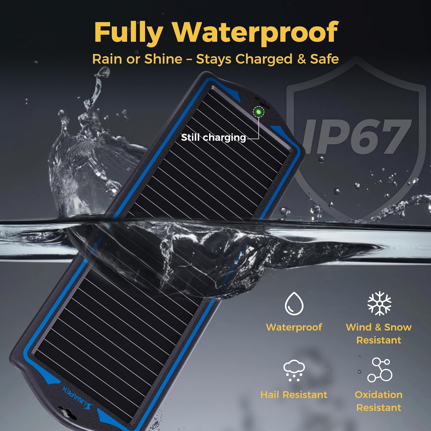 No Overcharging, No Battery Drain: The solar panel features a built-in controller that prevents overcharging. When the battery is full, the controller stops charging automatically and resumes when the voltage drops. Plus, our solar panel system won’t drain your battery