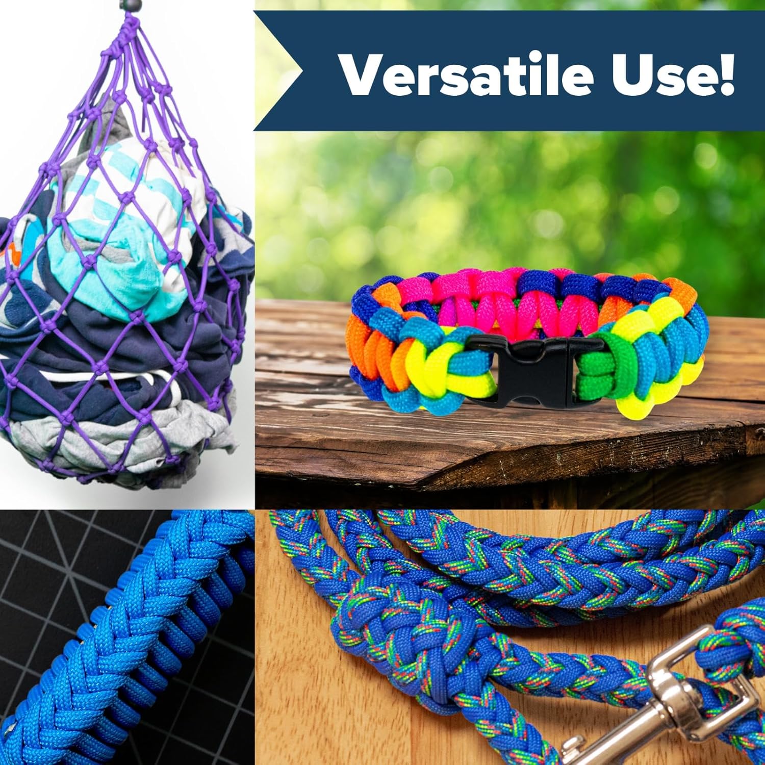 MULTI-PURPOSE: Paracord has an extensive range of uses. This incredibly versatile cord can be used to craft accessories like pet collars and bracelets, while also serving as a reliable tactical solution for securing outdoor gear such as bikes, kayaks, tents, and hammocks.