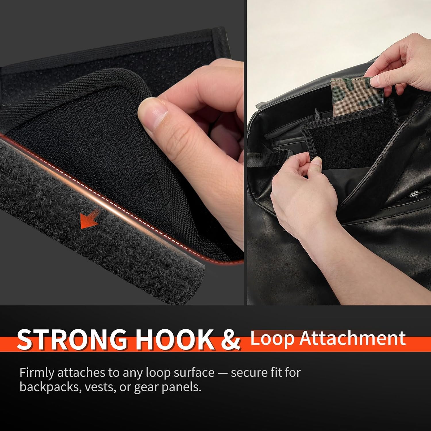 [Hook & Loop Dual-Sided Surface] : One side uses hook Velcro, the other uses loop Velcro, allowing secure attachment to backpacks, chest rigs, or plate carriers. The dual-surface design also supports attaching patches or extra accessories.