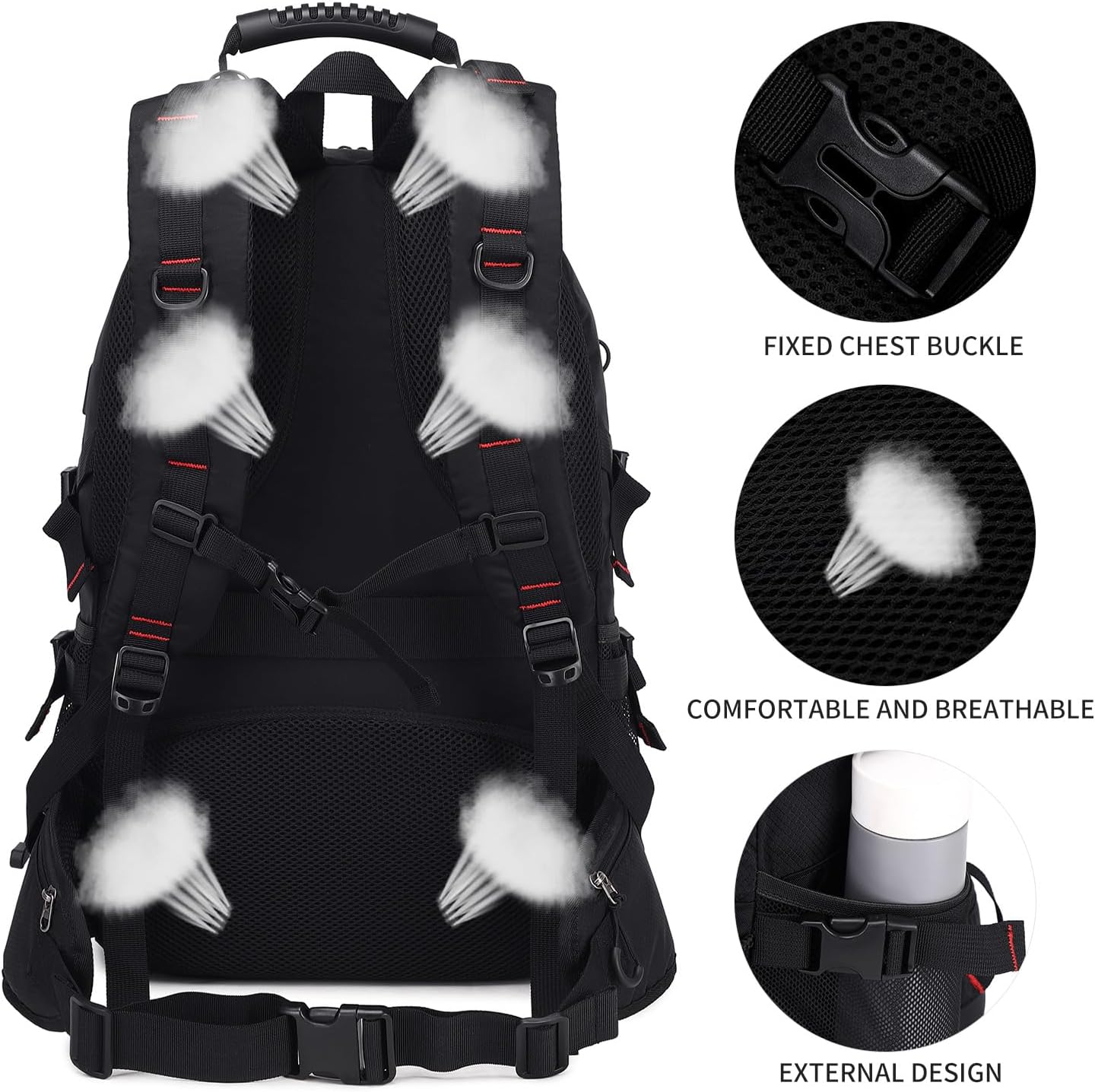 Large Capacity: With 40L storage space, this backpack features with multi-compartment design includes one main zipped compartment, several front pockets with zippers and two side pockets. Large capacity helps you easily organize all your essential items.