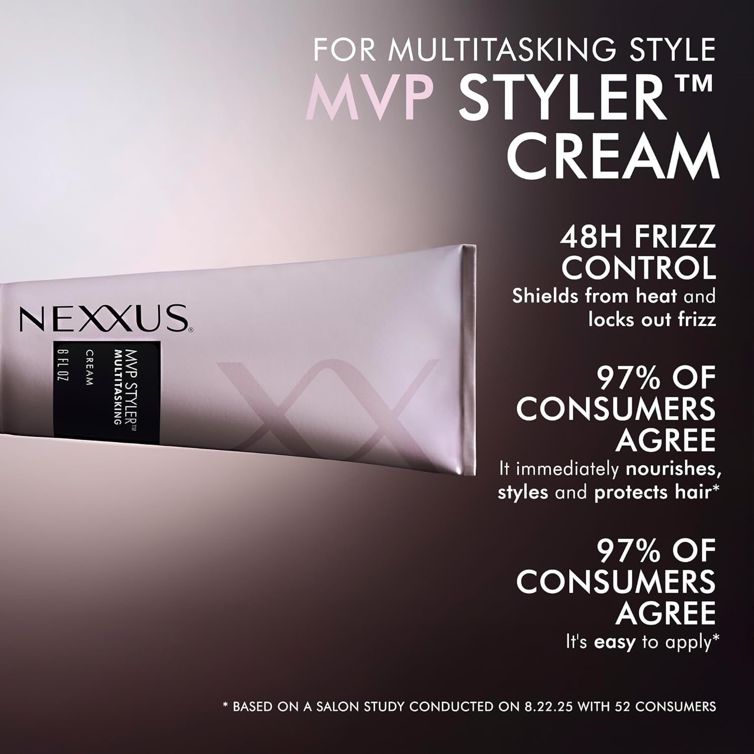 CONSUMER VALIDATED*: 97% of consumers agree: Nexxus hair styling cream immediately nourishes, styles and protects hair *Based on a salon study with 52 consumers on 8/22/2025