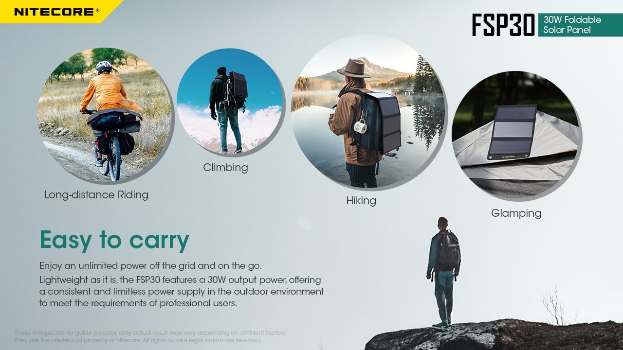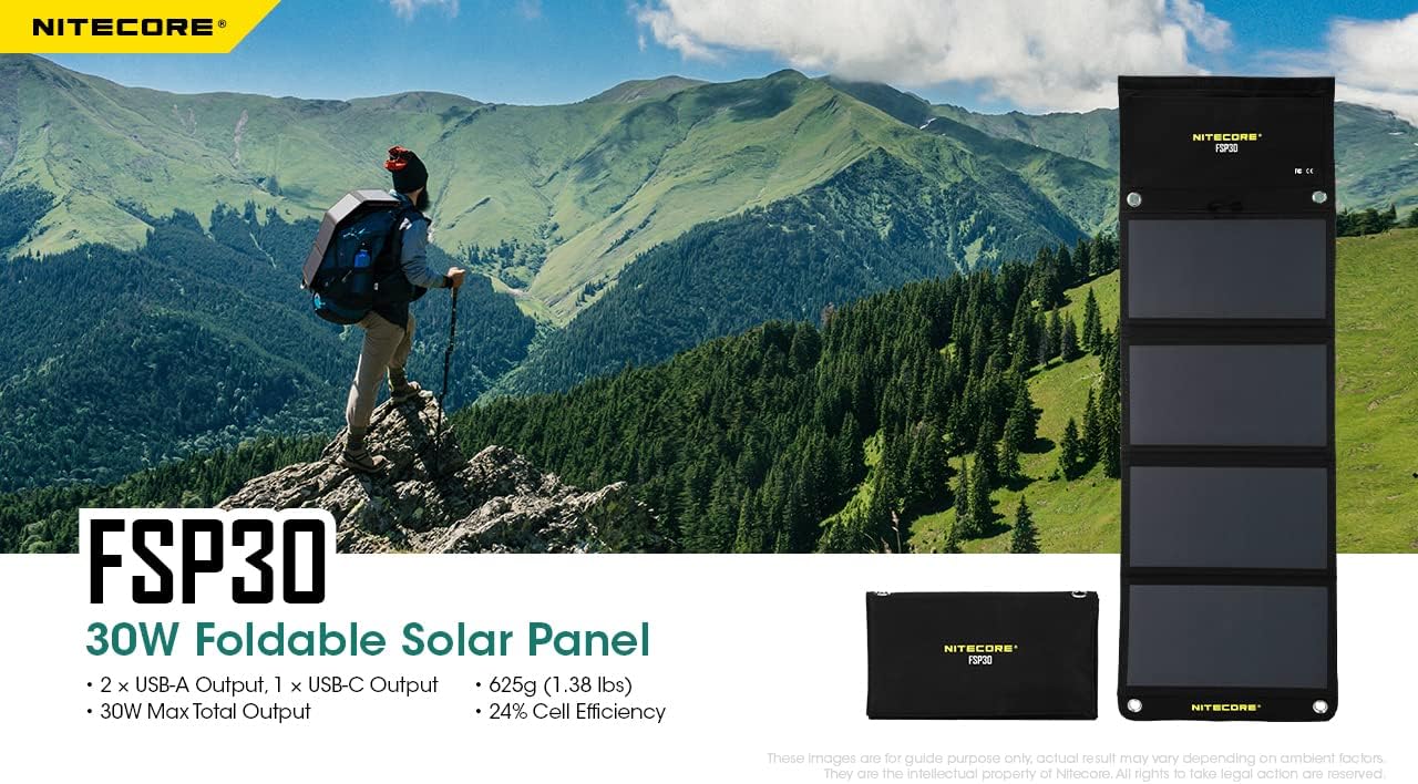 Content: Includes 30W Solar Charger and a Nitecore Sticker