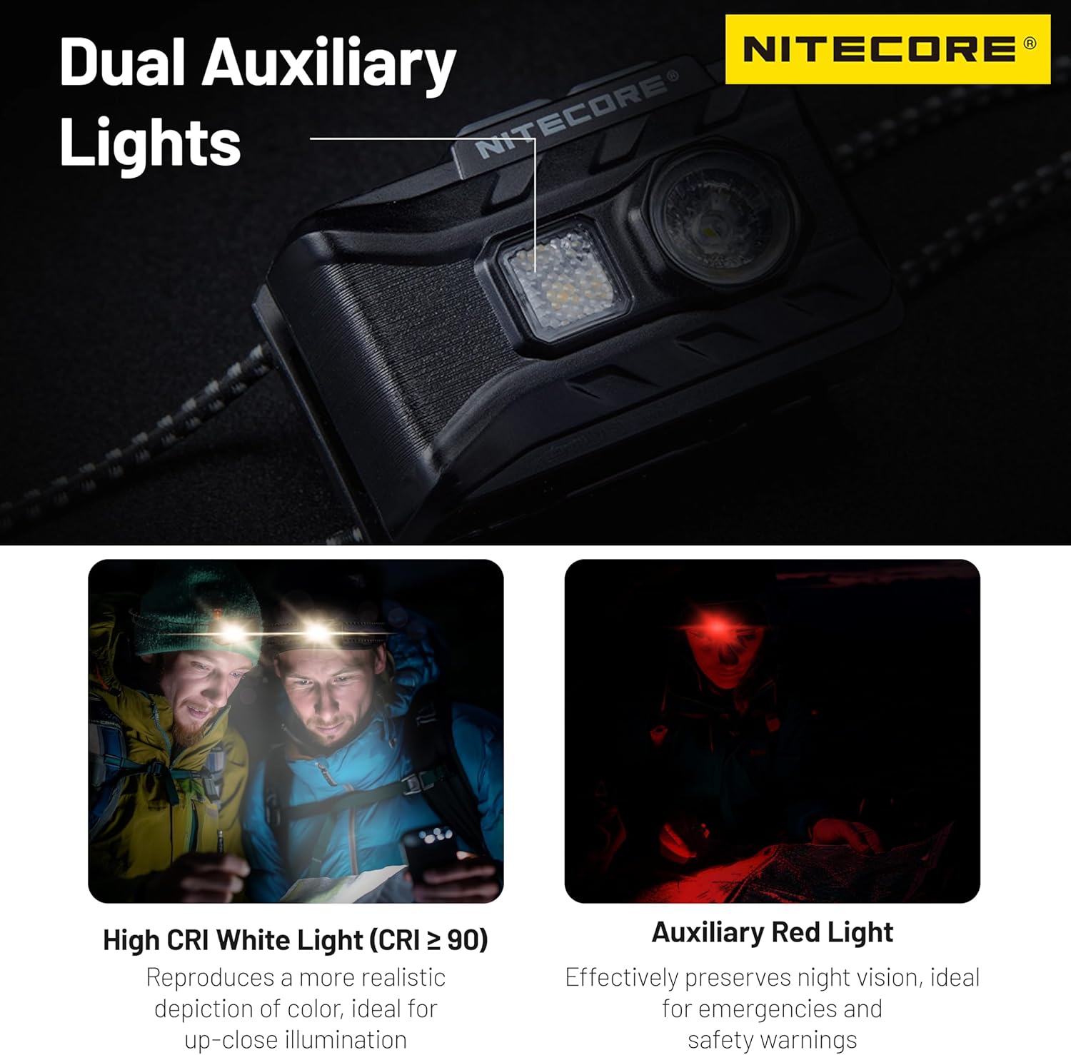 The headlamp includes the new UHE LED, the latest innovation of the NITECORE headlamp line, offering a 16.6% increase in luminous efficiency over the XP-G2 LED used in the NU25. This new LED supports a delicate balance of brightness, range, and efficiency under a compact design, delivering up to 360 lumens with a range of 109 meters—a 35% improvement over the NU25. Designed for comfort, it features a soft glow with smooth lighting transitions that are easy on the eyes, even during extended use.