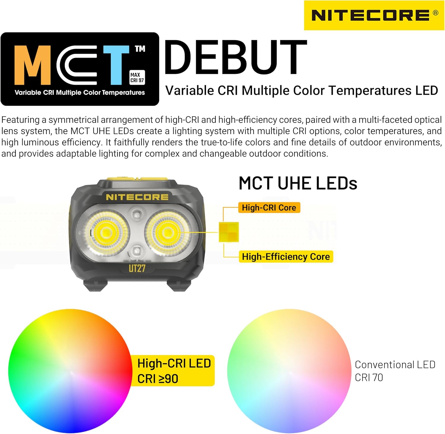 🥾 Nitecore UT27 MCT Pro High CRI Three Color Temperatures Lightweight Trail Running Headlamp with 2X HLB1500 Battery Pack, Tag (Black) — Review, Key Features & Current Price