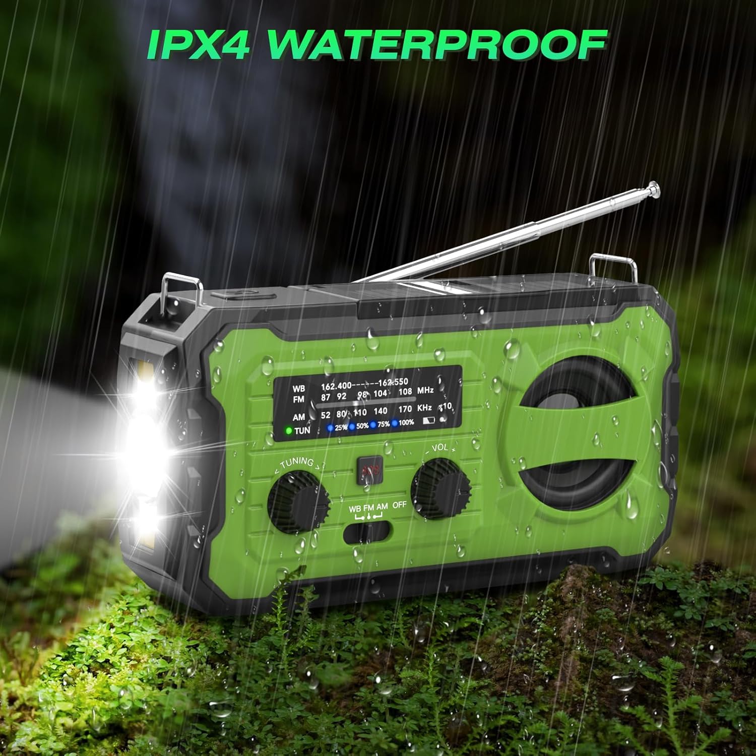 [NOAA Weather Alert Radio]: Emergency weather radio receives severe weather alerts, allowing you to prepare and stay safe in advance of impending natural disasters such as hurricanes, tornadoes, typhoons, rainstorms, fires, blizzards, earthquake, sandstorms, tsunamis, floods and more. Portable radio with waterproof and drop-proof design for durability even in harsh conditions. NOAA Weather alerts can only be received when the radio is turned on and the WB band is selected