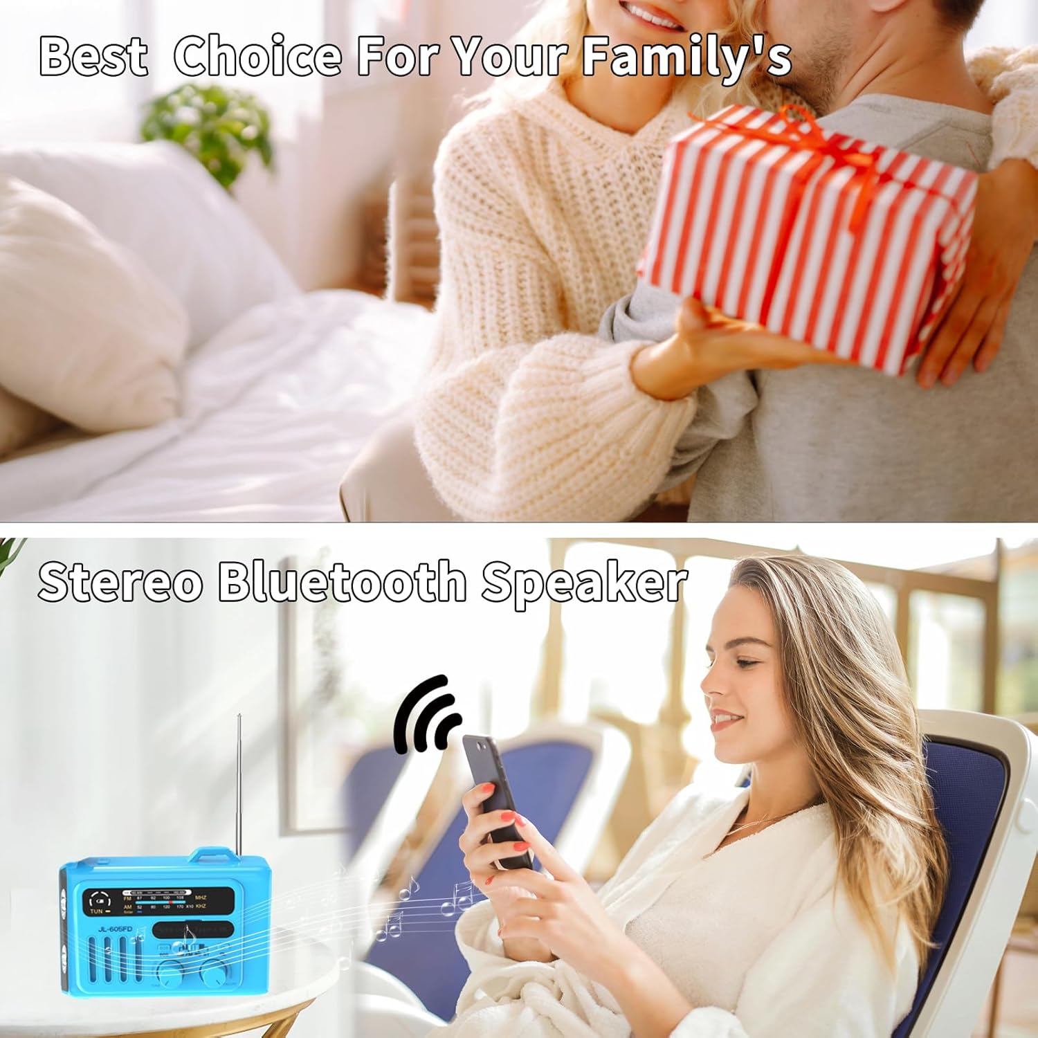 【Bluetooth Speaker 】The hand crank emergency weather radio has Bluetooth function, you can connect your phone via Bluetooth as a speaker to listen to your favorite music. Perfect for the beach, camping, forest and hiking.