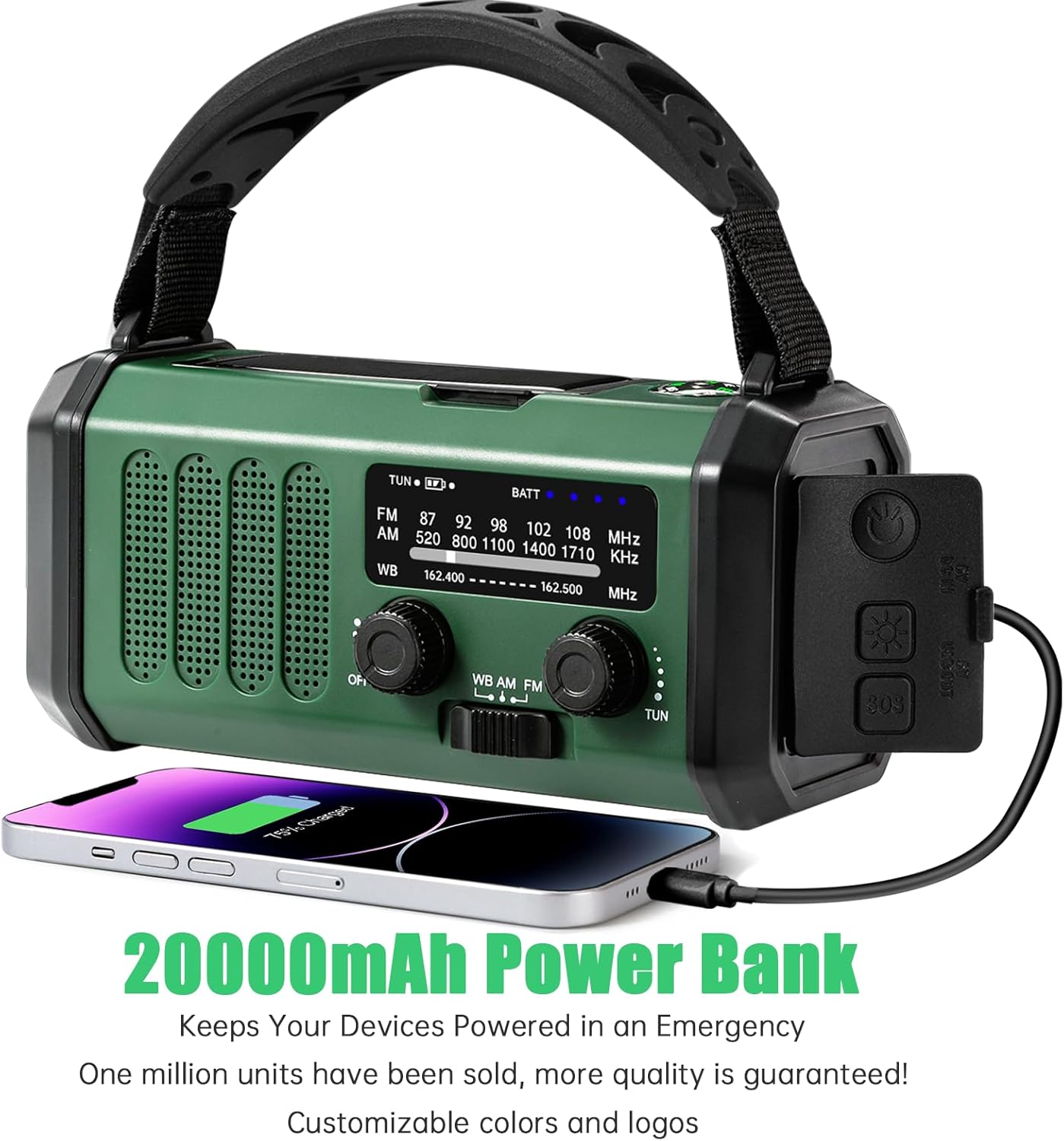 π₯Ύ Emergency Weather Radio 20000mAh NOAA/AM/FM with 74000mWh USB/Solar/Hand Crank Charging, Battery Operated, SOS Alarm & Flashlight for Indoor/Outdoor Emergencies (Green) β Review, Key Features & Current Price