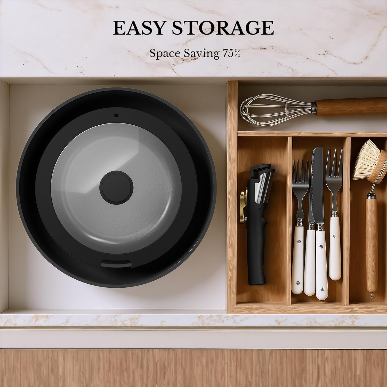 For a Clutter-free Cabinets: Optimal storage and easy stacking with the handles off saves up to 70% more space of OUBRL detachable handle pots and pans set.—keeping the kitchen organized and tidy