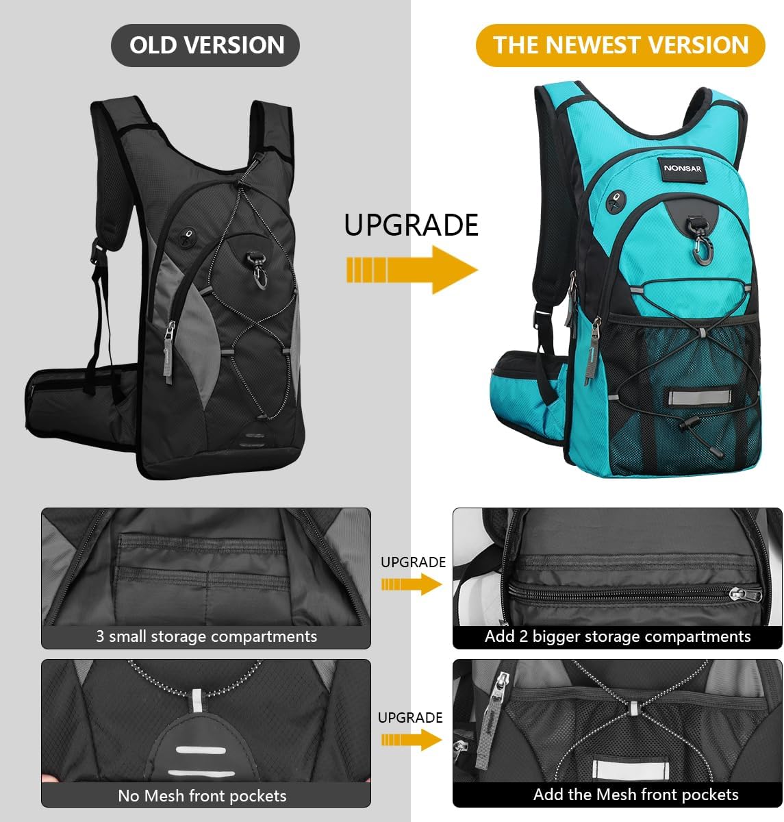 【LIFETIME WARRANTY】Every hydration pack comes with a lifetime warranty. At present, the old and upgraded water packs are shipped randomly. If you have any issues with our product, please contact us immediately to get a new hydration backpack or free bladder.