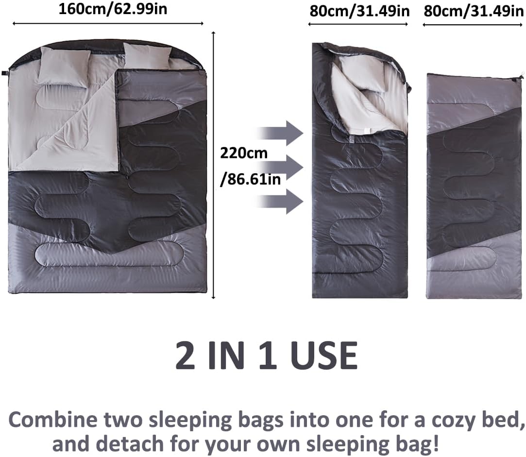 For all Seasons: Our sleeping bags are suitable for all seasons. In addition, these sleeping bags are designed to be weatherproof, keeping you warm even in extreme conditions and protecting you from moisture – this is achieved through double-fill technology.
