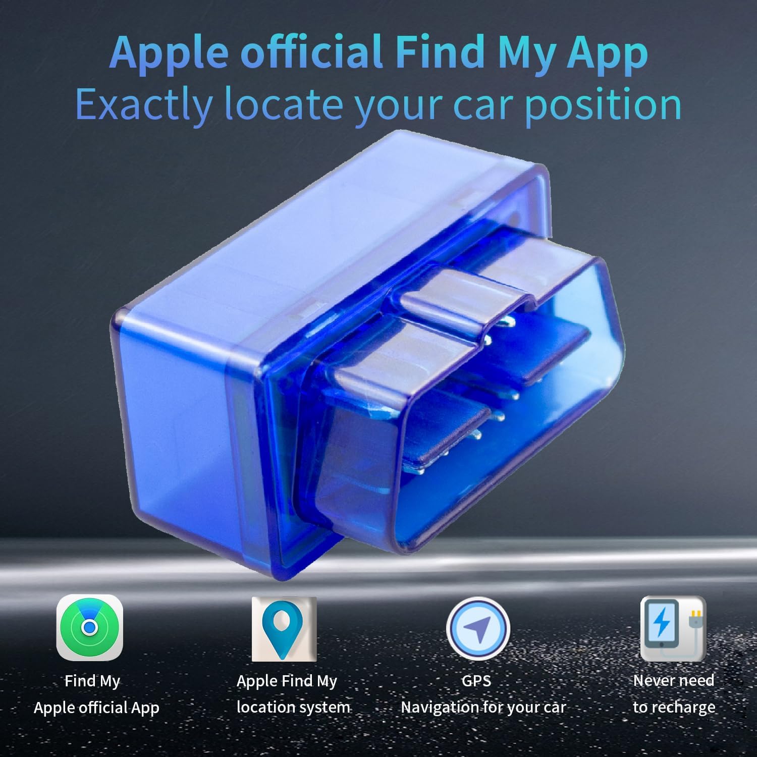 Easy Setup: Just plug in or connect it to the car power supply and start to track anytime. It can still be tracked in Apple Find My app when the car is turned off. Never worry to recharge the device. No SIM card nor subcription needed.