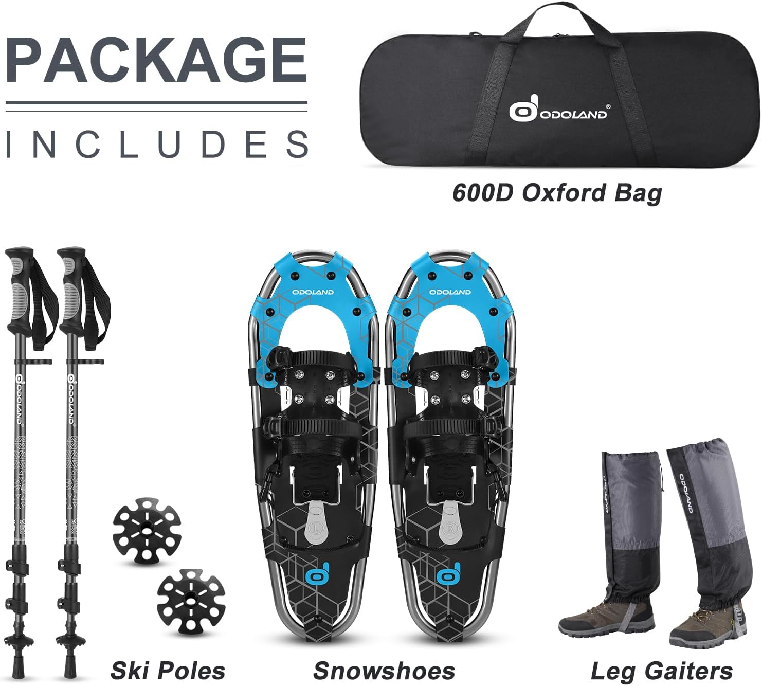 ⛄🎁Waterproof Leg Gaiters: Made of pongee fabric, provides excellent water and tear & puncture resistance. The perfect Christmas gift, share Odoland snowshoes with families, friends, and freely explore the snowy natural world.