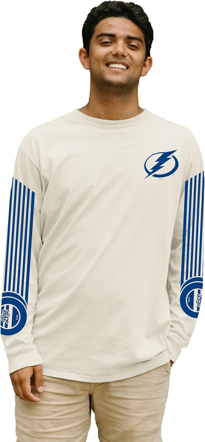 This Anaheim dyed ringspun long sleeve t-shirt has high-quality graphics on the front & sleeves perfect for any Ducks fan that loves to show their team pride