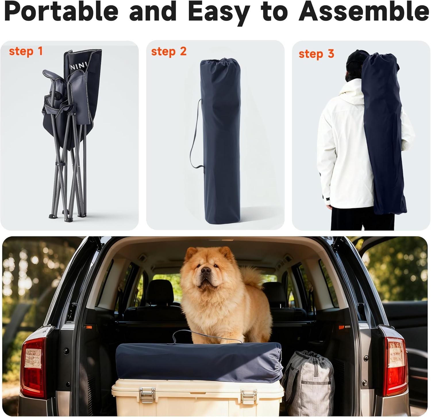 【Portable and Easy to Assemble】No worries about assembly and carrying. Setting up this chair is quick and effortless—simply take it out of the carrying bag and expand the frame to enjoy the comfort it provides.Onini oversized folding chair measures 39x22x22in and weighs a mere 11lbs,The dimensions of the camping chair after storage are 20in*10in*20in, and comes with a carrying bag for convenient storage and transportation, you can easily carry it on your shoulder.