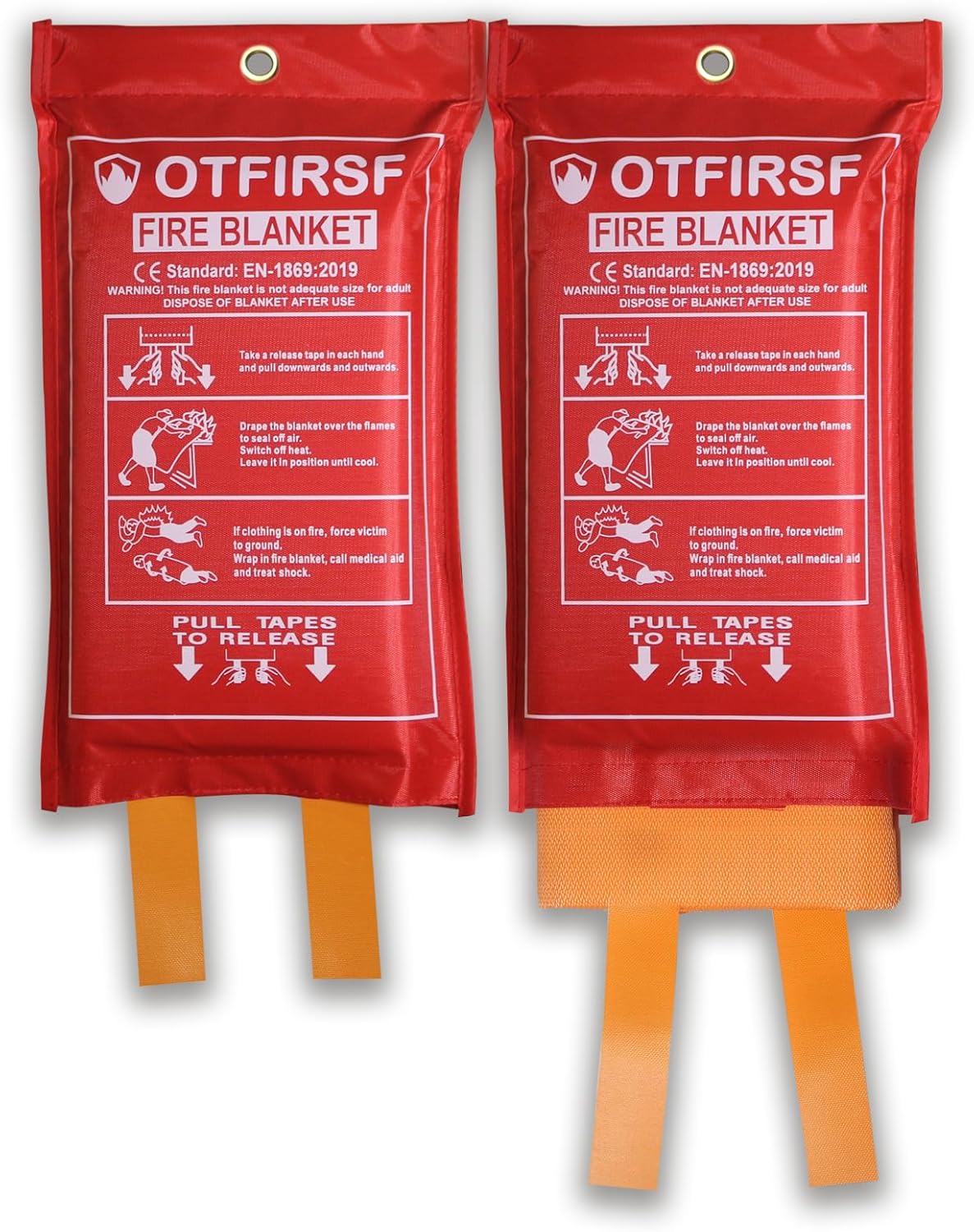 OTFIRSF Silicone Coated Fiberglass Fire Blankets:Safely put out a fire in seconds.Anyone can use it without training.Works On Most Types Of Fire,includes grease,wood,paper,and even electrical fires.Use as emergency survival blanket or fireproof blanket for grill. Safe to drape over adults, children, or pets.