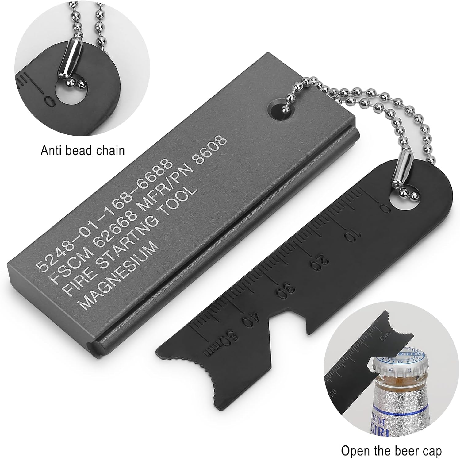 👍Multi-Function: Each fire rod comes with a 6-function multi-tool that serves as a straight-edge striker, tinder scraper, map scale, ruler, hex wrench, and most importantly – a bottle opener.