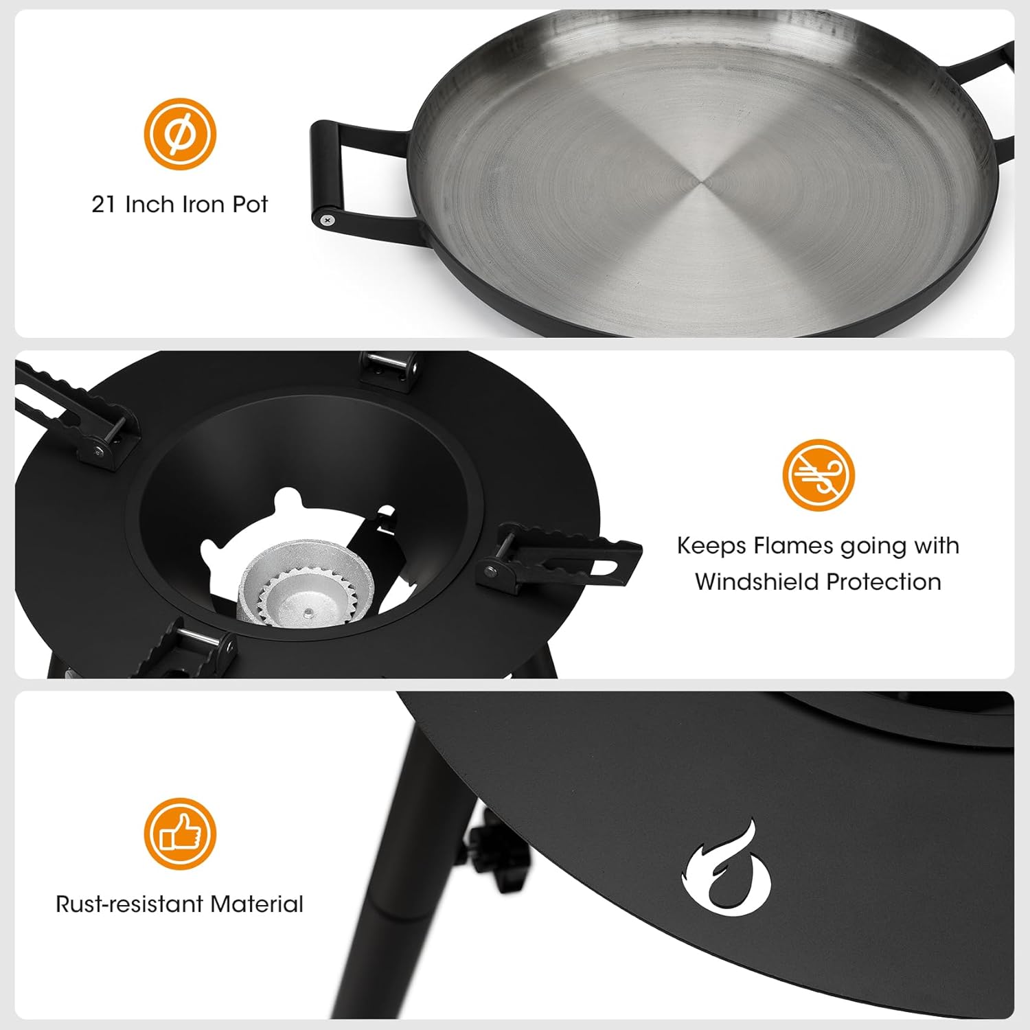 【Portable and Compact Design】 – The propane burner set comes with a wok, flame-protective wind guard, removable support legs, 4 ft hose, comfortable 33-inch height and 21 inch wok. This outdoor stove can cook any meal like a chef’s to meet your outdoor cooking needs.