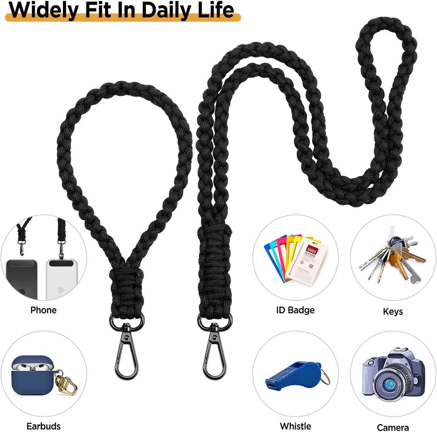Widely Use In Daily Life: Paracord lanyard conveniently for your phone, keys, ID badges, cameras, flashlights, wallets, and whistles without needing pockets, ensures your essentials are easily accessible and easily enjoy any outdoor