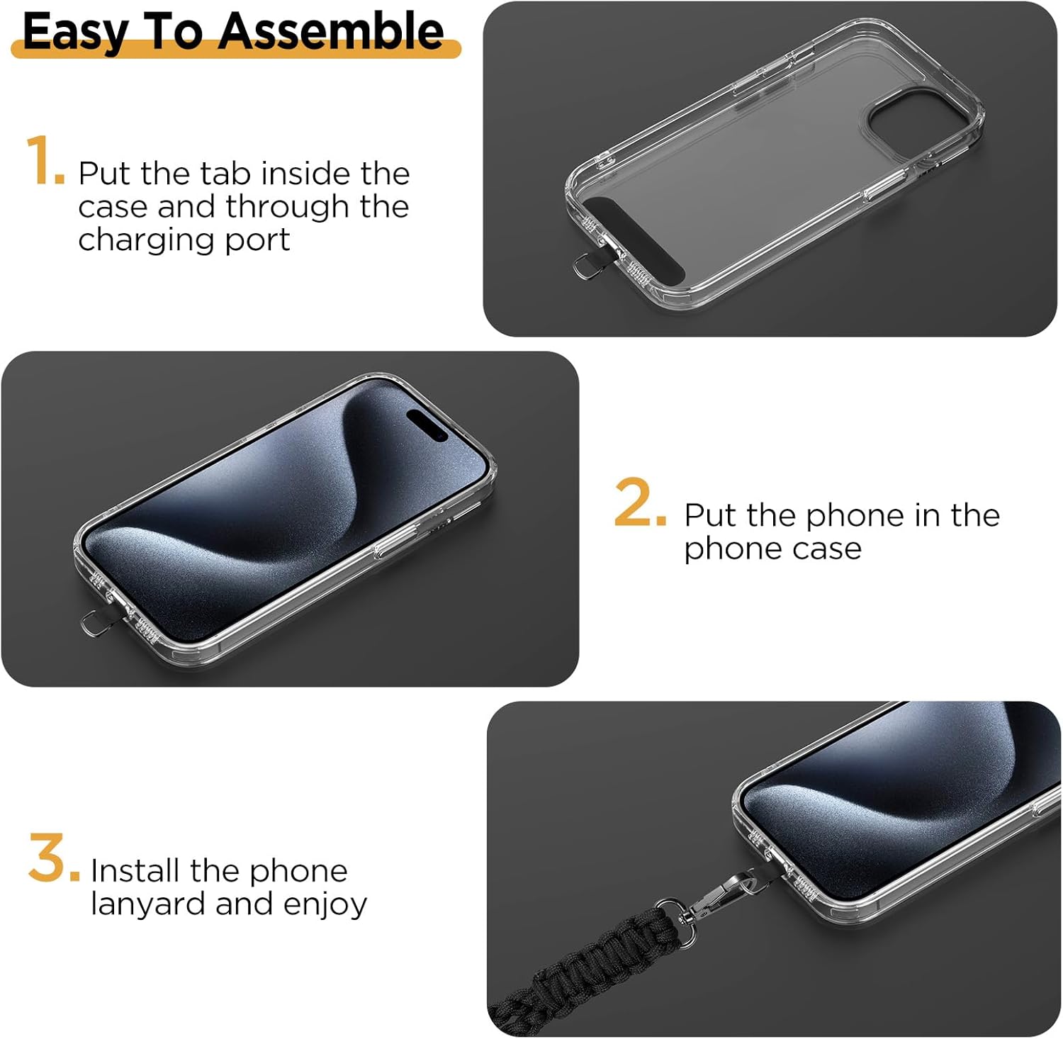 Easy To Use: No tools required, stick the pad on your phone case, then connect to the lanyard through the charging port of your phone case. 4 Pack tabs with 2 colors for choosing freely according to your needs