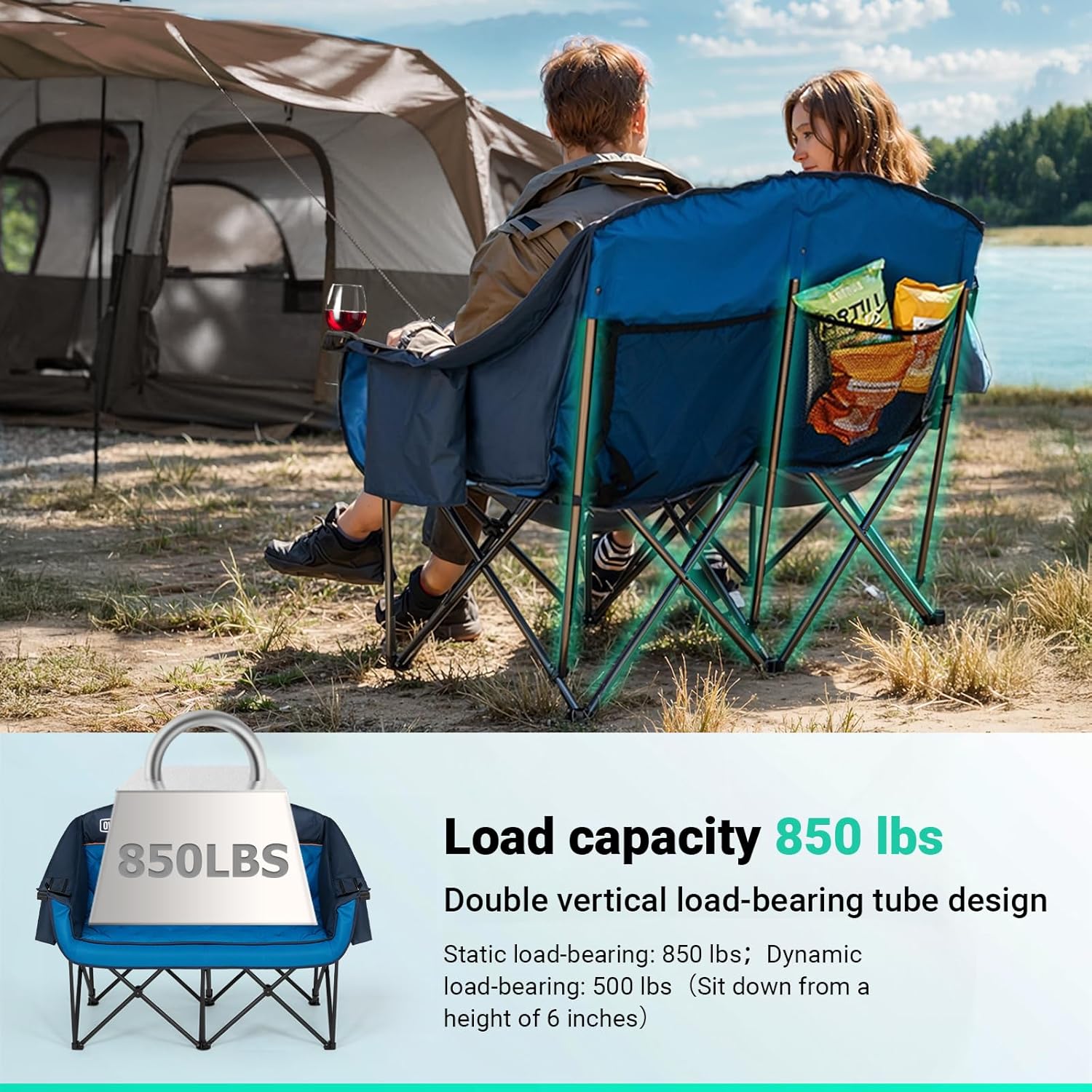 【Unmatched Durability & Heavy – Duty Support】 Constructed with 800D robust and abrasion – resistant oxford fabric, a sturdy X – shaped steel frame, and a dual vertical load – bearing tube design, this loveseat camping chair provides exceptional strength. It can support an impressive weight of up to 850LBS, ensuring stability and reliability for all your outdoor adventures.