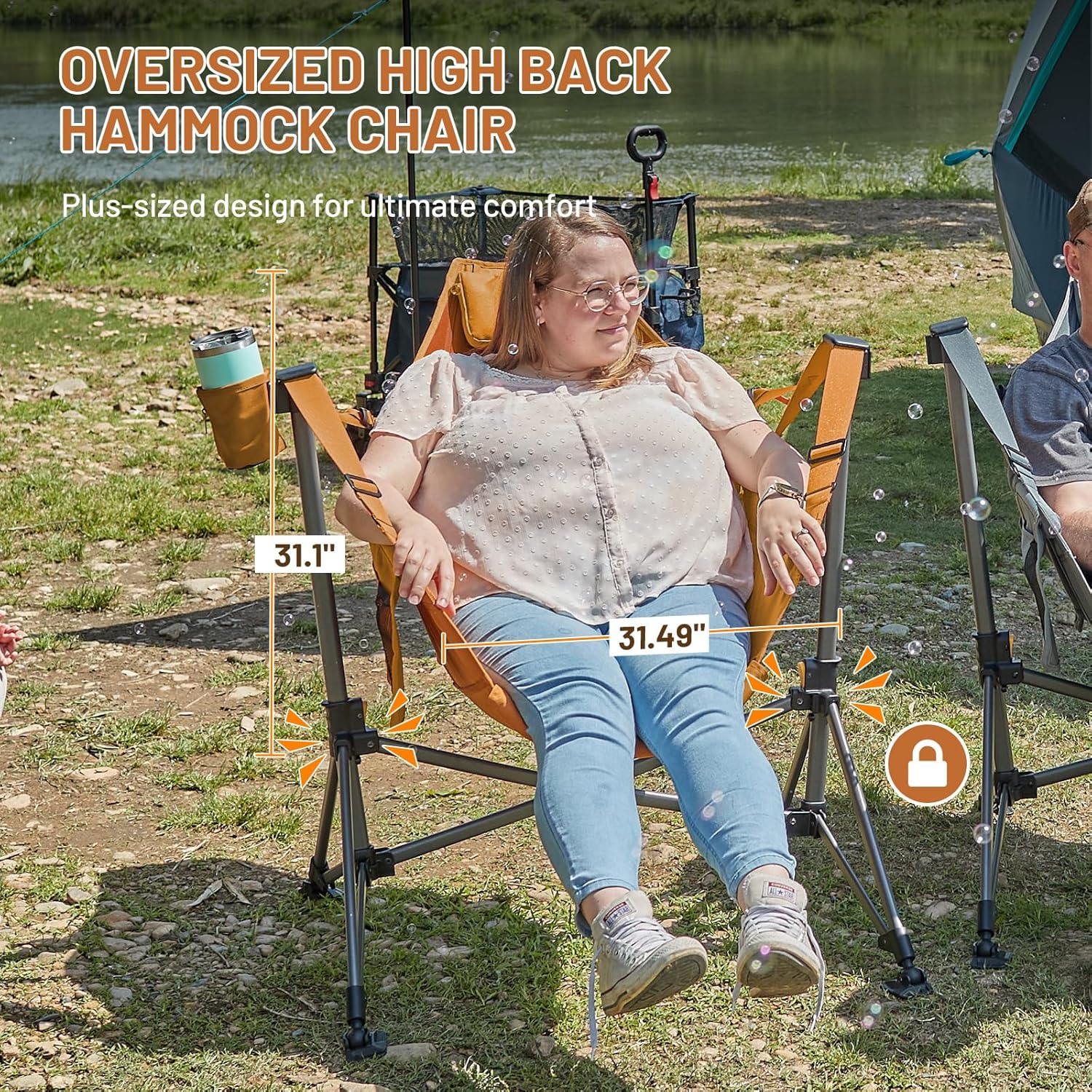 OVERSIZED COMFORT: With a roomy 31.5″ seat width and high 31.1″ back, this hammock camping chair supports up to 400 lbs and measures 31.1″ x 30.7″ x 42.1″ when open for relaxing comfort.