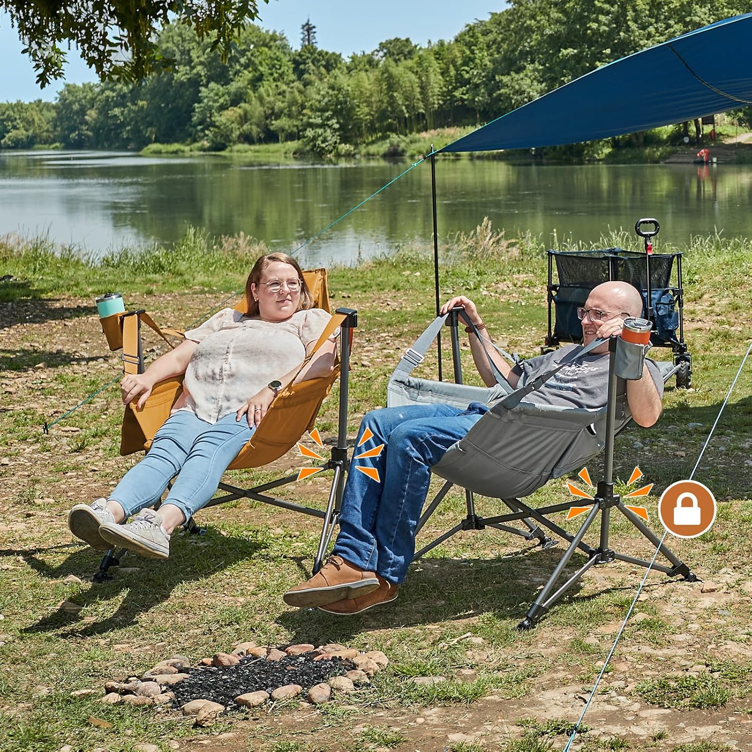 VERSATILE DESIGN: Handy cup holder and side pocket keep essentials nearby, while non-slip foot pads provide stability on any surface. Perfect for outdoor adventures and everyday use.