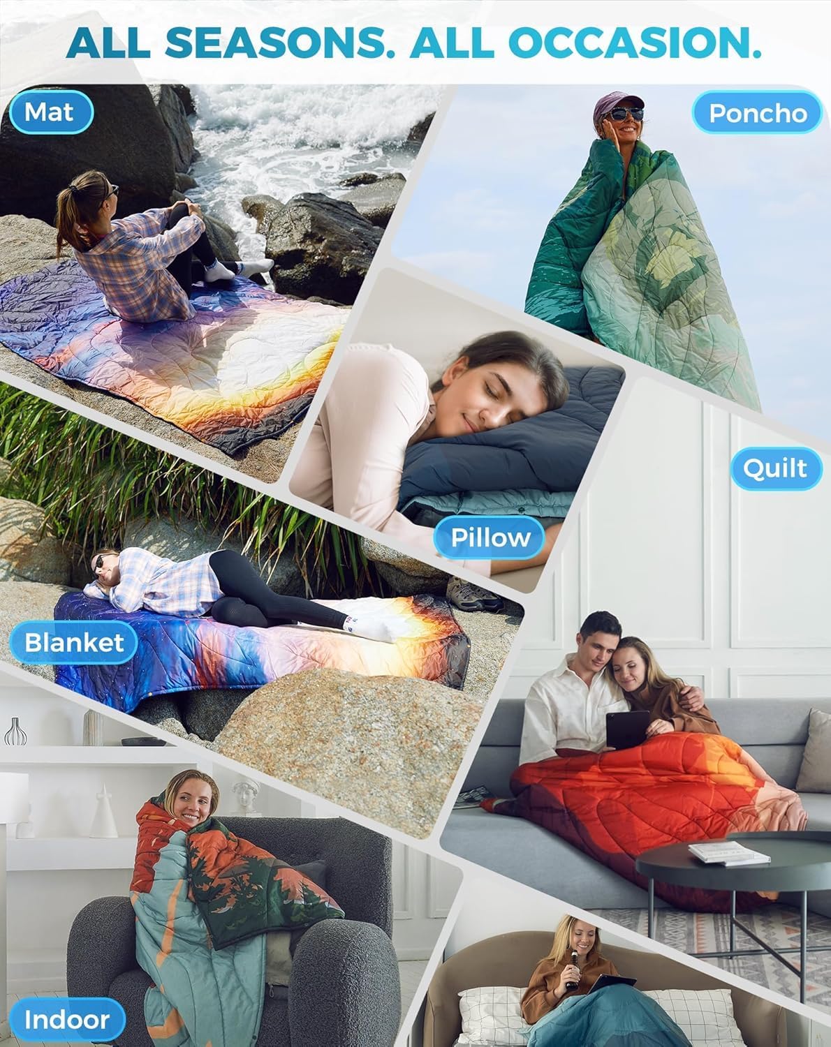MULTI-FUNCTIONAL & GIFT – READY: More than just a blanket for camping, it also works as a picnic mat, travel pillow, emergency sleeping bag, or office throw. The tightly woven fabric resists pet hair and is machine washable for easy care. Lightweight and compressible, this camp blanket packable design fits perfectly into daily life and travel. Its stylish look and practical function also make it a thoughtful gift for family, friends, or outdoor lovers.