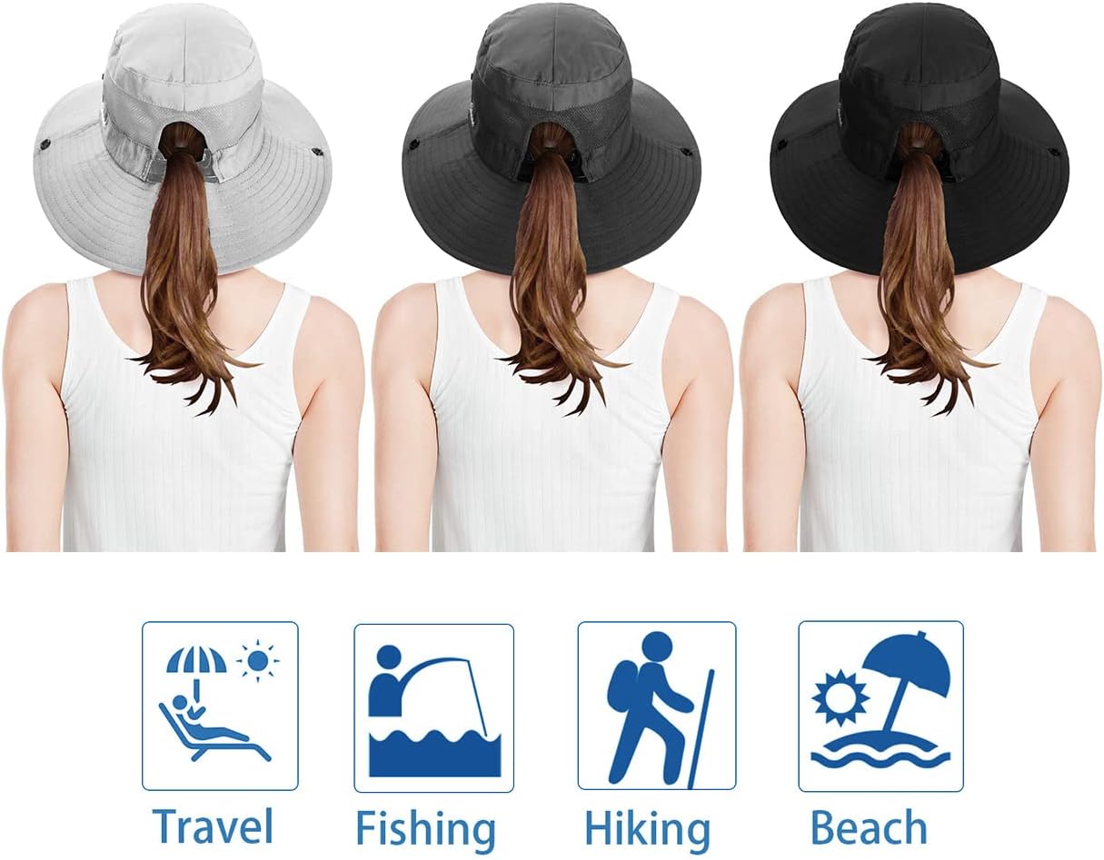 The hat with ponytail hole in back,pull your bun or ponytail through on hot summer days.