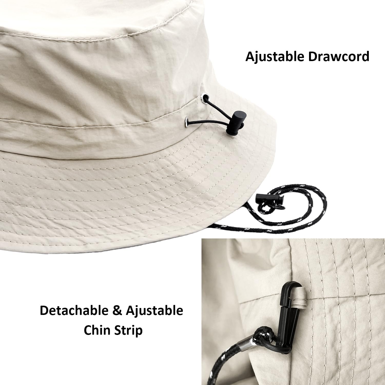 This sun hat was made with an easy to use adjustable drawstring. By pulling the drawstring and fastening the draw cord the right place you feel comfortable, this will make the hat specially designed for your head size.