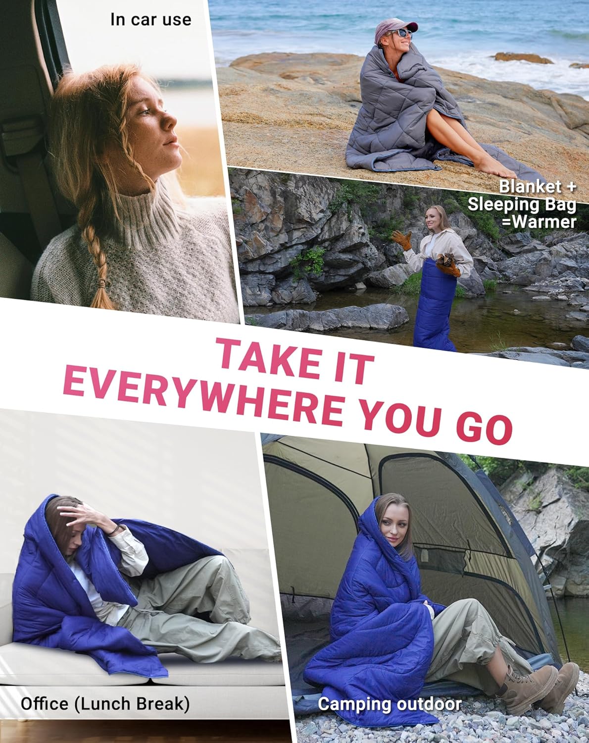 MULTI-USE FOR ANY OCCASION — OUTDOOR, INDOOR COMFORT WITH PRACTICAL DETAILS: More than just a camping blanket, it works as a picnic mat, shawl, travel pillow, or emergency sleeping bag. Whether you’re camping, watching outdoor movies, or relaxing at home, it’s your go-to gear for year-round comfort. The smooth, tightly woven fabric resists pet hair and is machine washable—easy to maintain, even in homes with pets. Lightweight and packable, it’s a versatile choice for everyday use and travel.