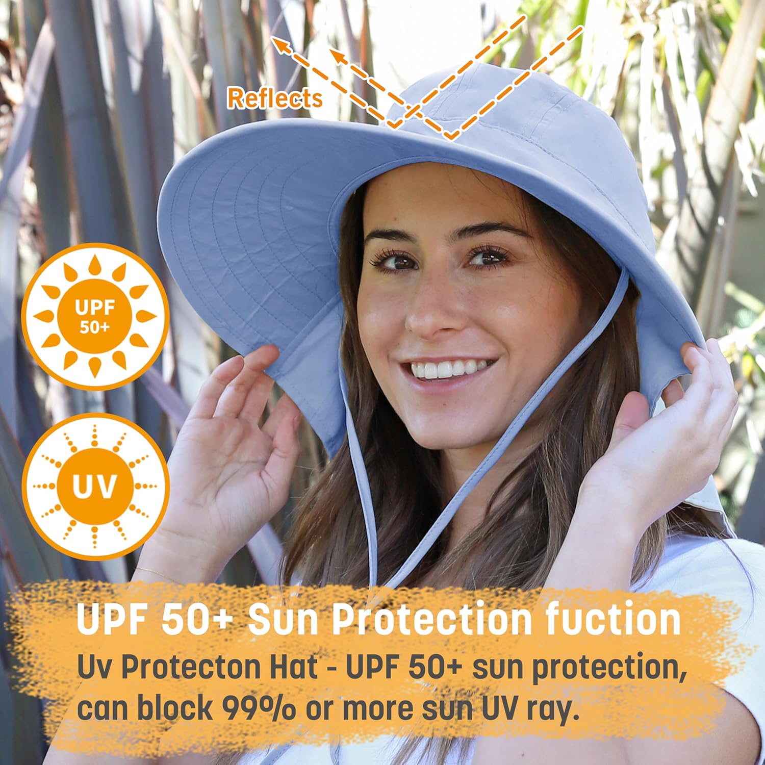 SMALL HEAD FIT (22.8” Circumference): Designed for petite women and teens, this adjustable sun hat securely fits smaller heads while standard hats slip off. 4.3” wide brim + 7.8” neck flap block 99% UV rays.