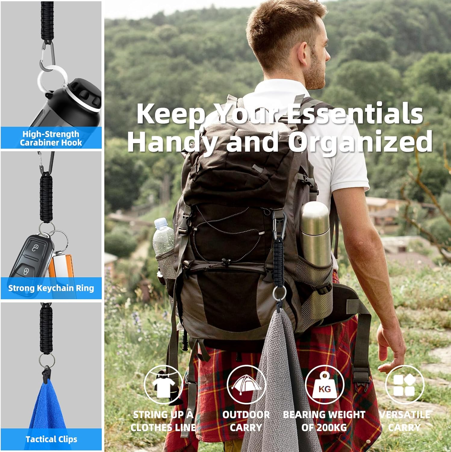 【Portable & Multi-Functional Design】Compact and lightweight, our paracord keychain set easily clips to belts, backpacks, or fits in your pocket. Perfect for EDC setups, hiking, travel, or camping—your essential paracord accessory for everyday carry and outdoor adventures.
