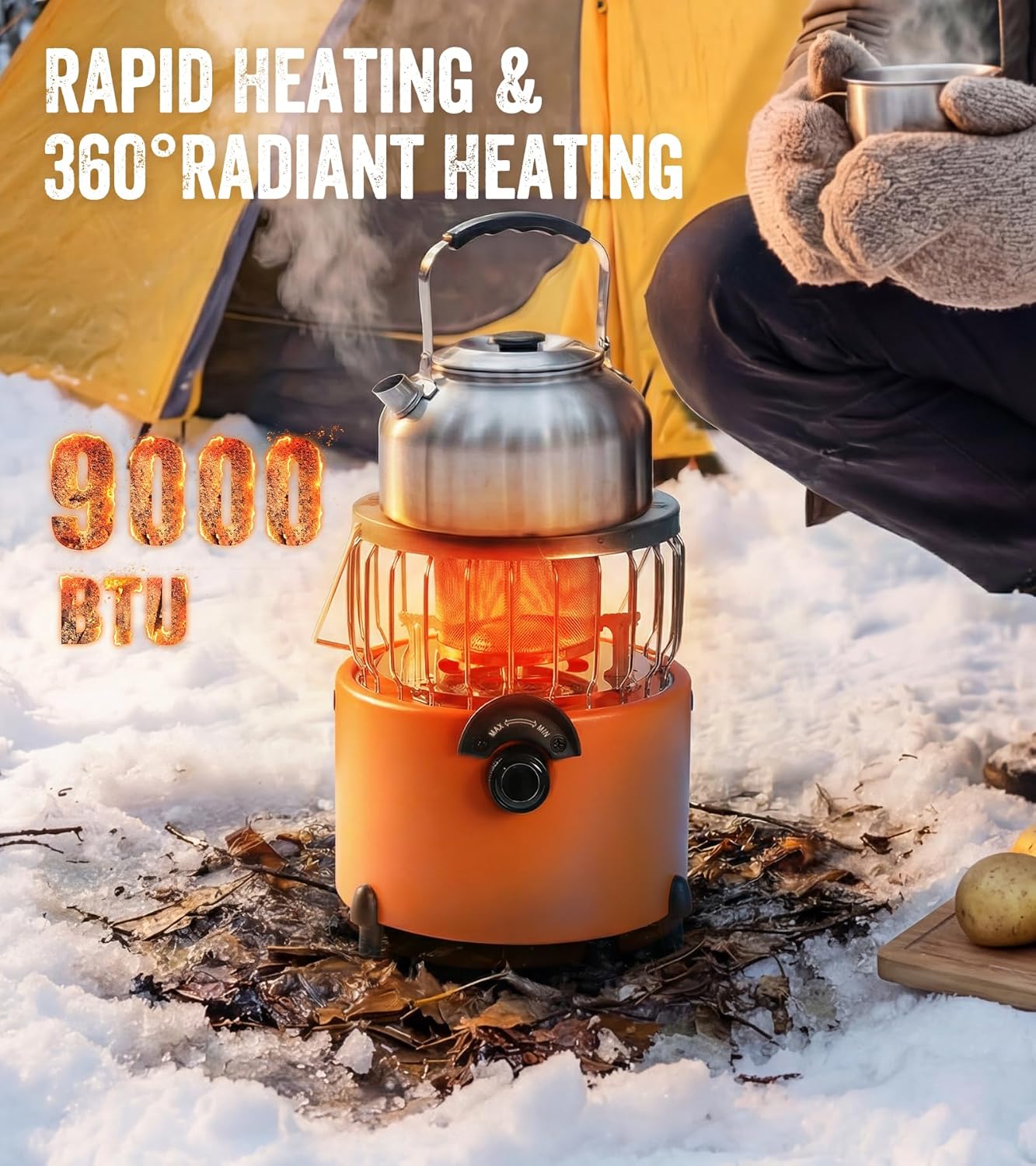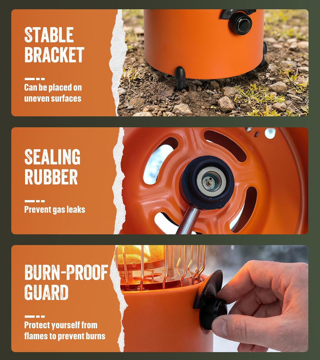 【Compact and Rugged Portable Design】Built for mobility, this small propane heater features a lightweight, durable construction that withstands outdoor use. Its portable form factor makes it easy to carry on all your adventures, serving as an essential portable heater for camping, ice fishing, backpacking, hiking and hunting trips.