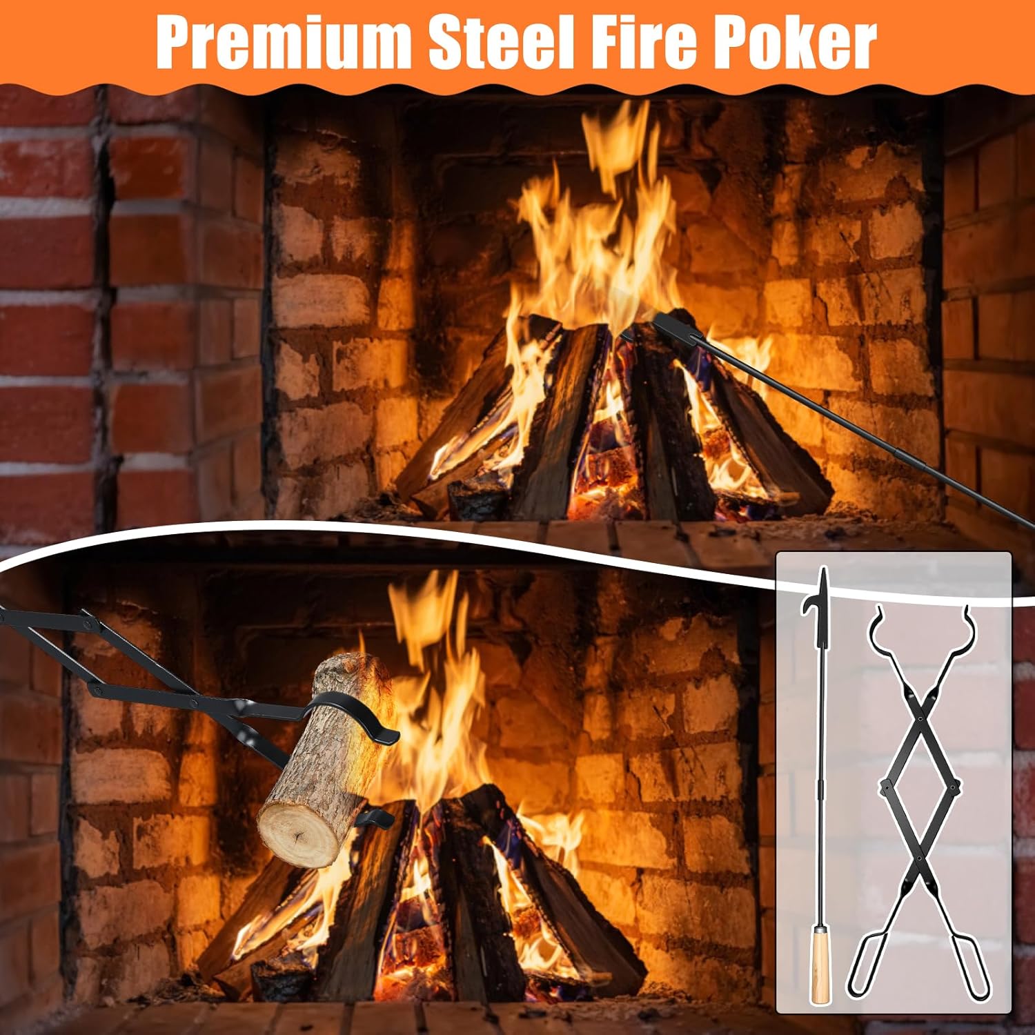 Quality and Durable: this two-piece fireplace tool set (fire stick and tongs) is made of solid wrought iron, rust resistant, heat-resistant up to 2000°F, and can withstand high-strength use without bending or breaking easily; Durable and sturdy design, suitable for fireplaces, fire pits, wooden stoves, and outdoor camping campfires