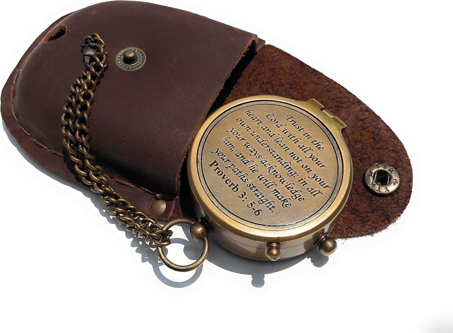 Brass Compass – Nautical Compass – Pocket Compass with Leather Box – Engraved Compass – So You can Always find Your Way Back Home – gift compass