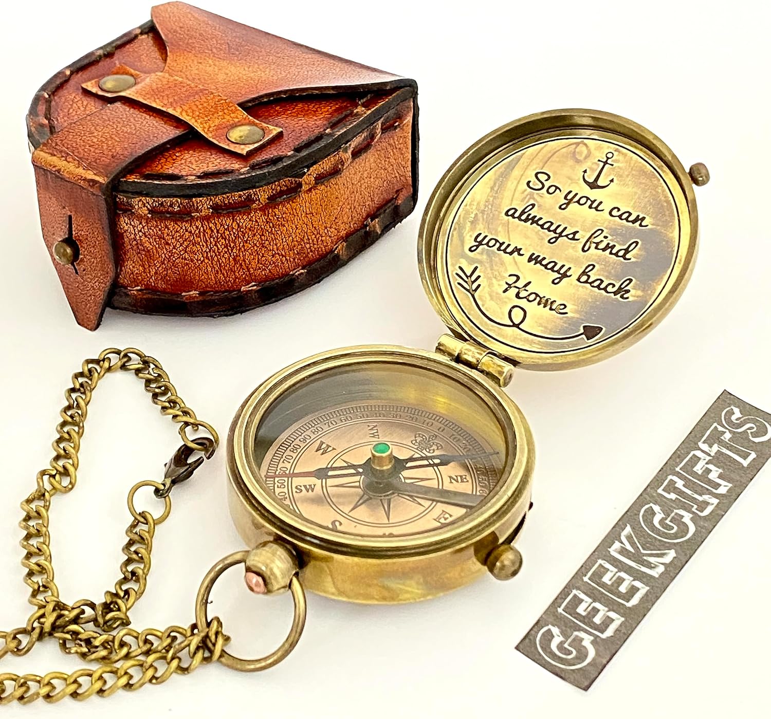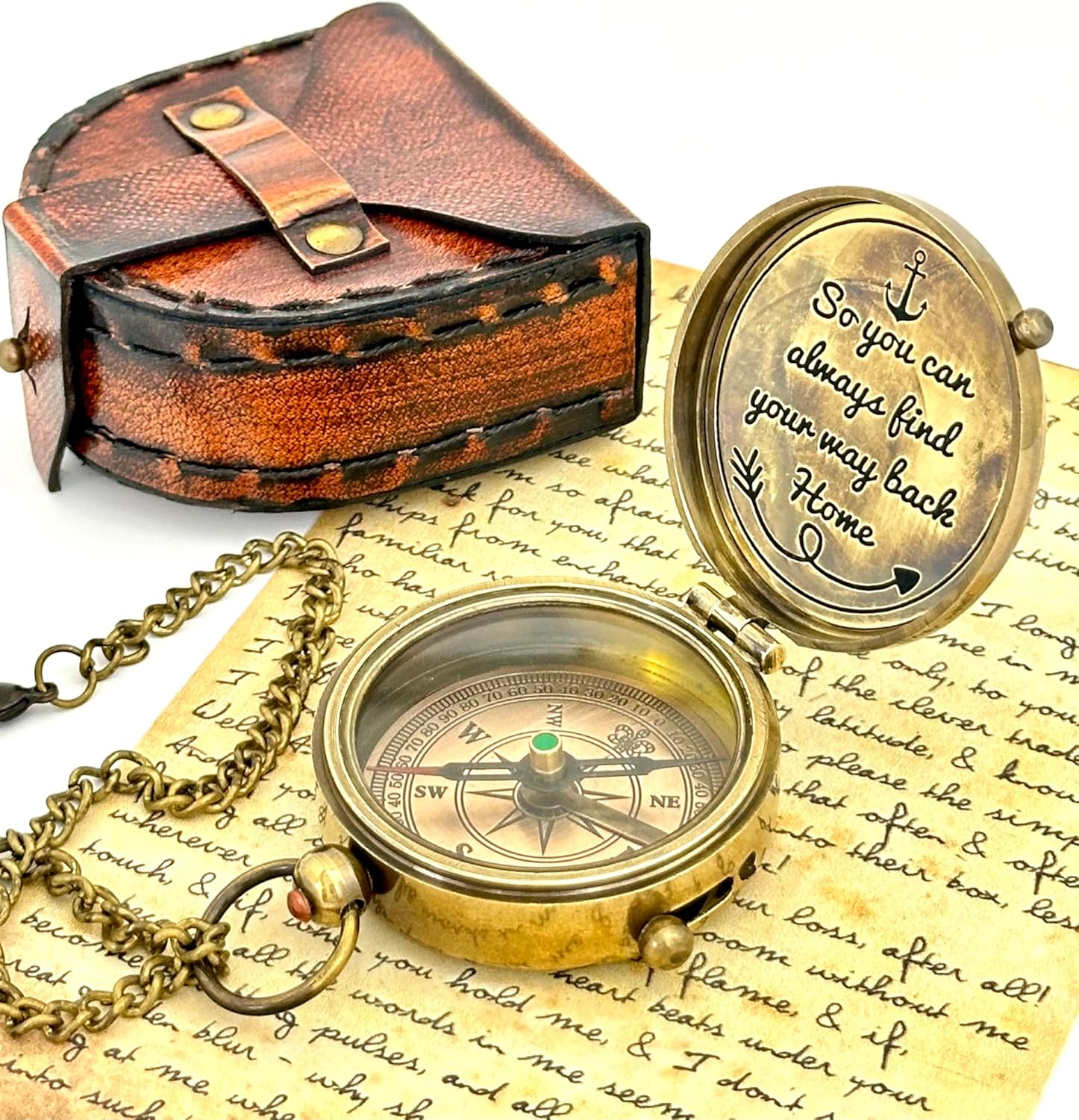 Pocket compass – Brass Compass with Leather Box – Engraved compass – so you can always find your way back home – Steampunk Retro Gift- Nautical compass. . . . . . . The compass is elegantly engraved with the timeless phrase, “So you can always find your way back home,” serving as a constant reminder of the importance of enjoying every step of life’s voyage.. . . . . .