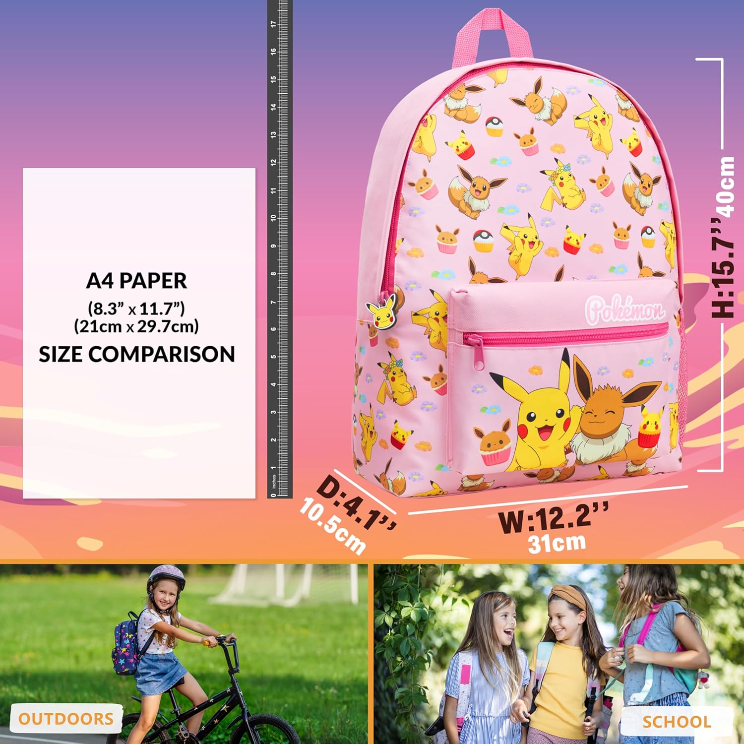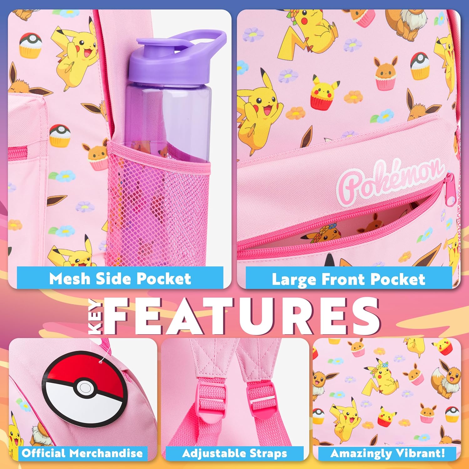 Ready for Every Adventure: This Pokemon backpack for girls and boys features padded adjustable straps, a spacious compartment, and zip pockets—ideal as a school bag, bookbag, or kids travel backpack.