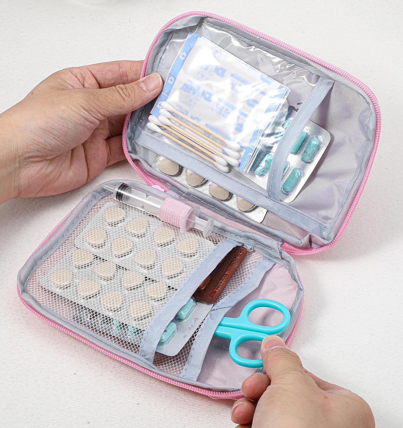 Custom Storage – Our pink first aid kit small offers multiple compartments and mesh pockets so bandages, medications, and tools stay organized with a quick-access zipper for urgent moments