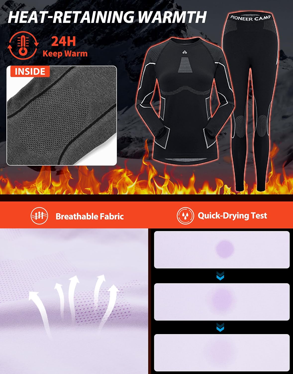 Womens Thermal Underwear Long Johns Ski Snow Base Layer Top & Bottom Set