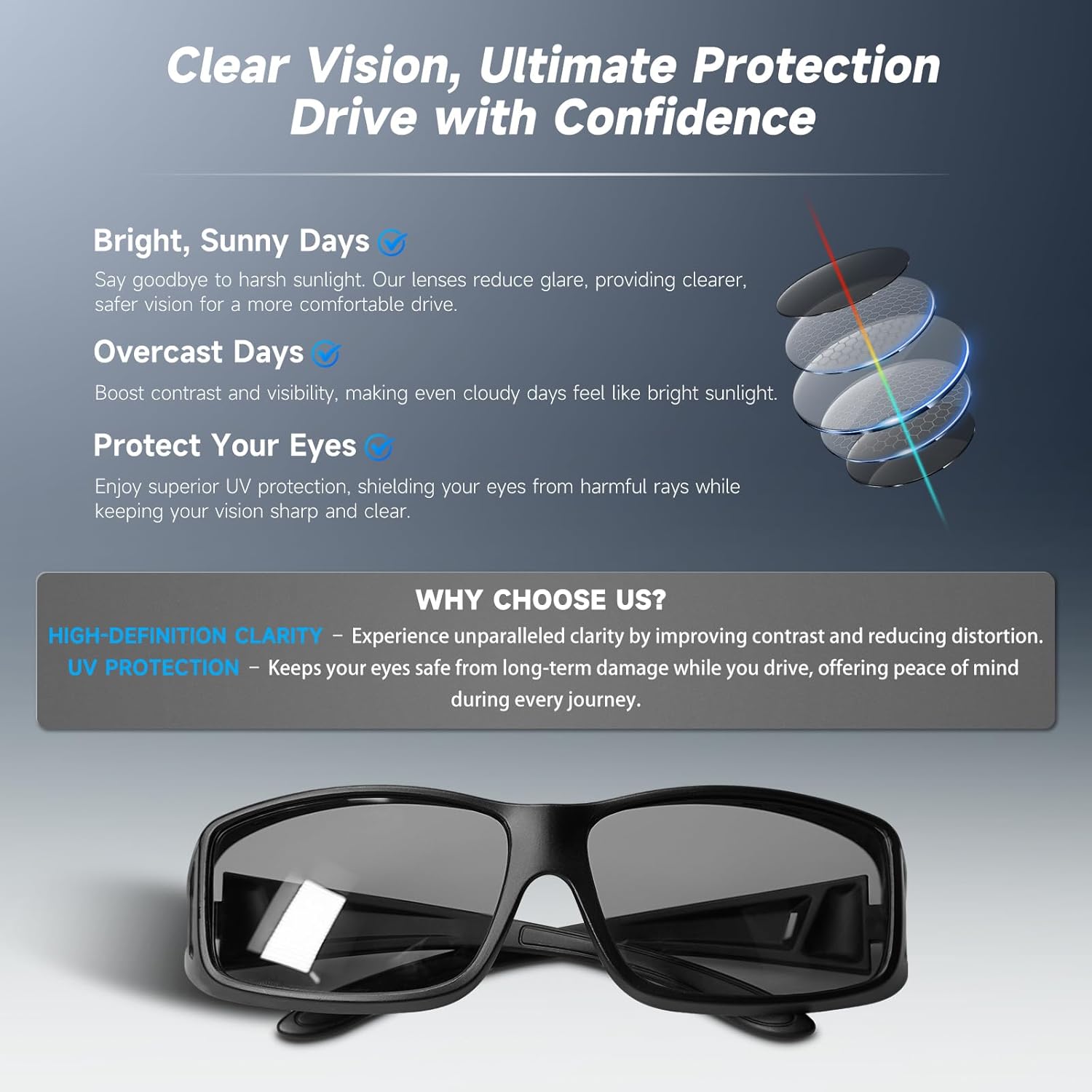 These night vision fit over glasses are designed specifically for drivers who already wear prescription eyewear. Unlike standard night glasses, they fit comfortably over most frames, helping reduce glare while keeping your original glasses on.