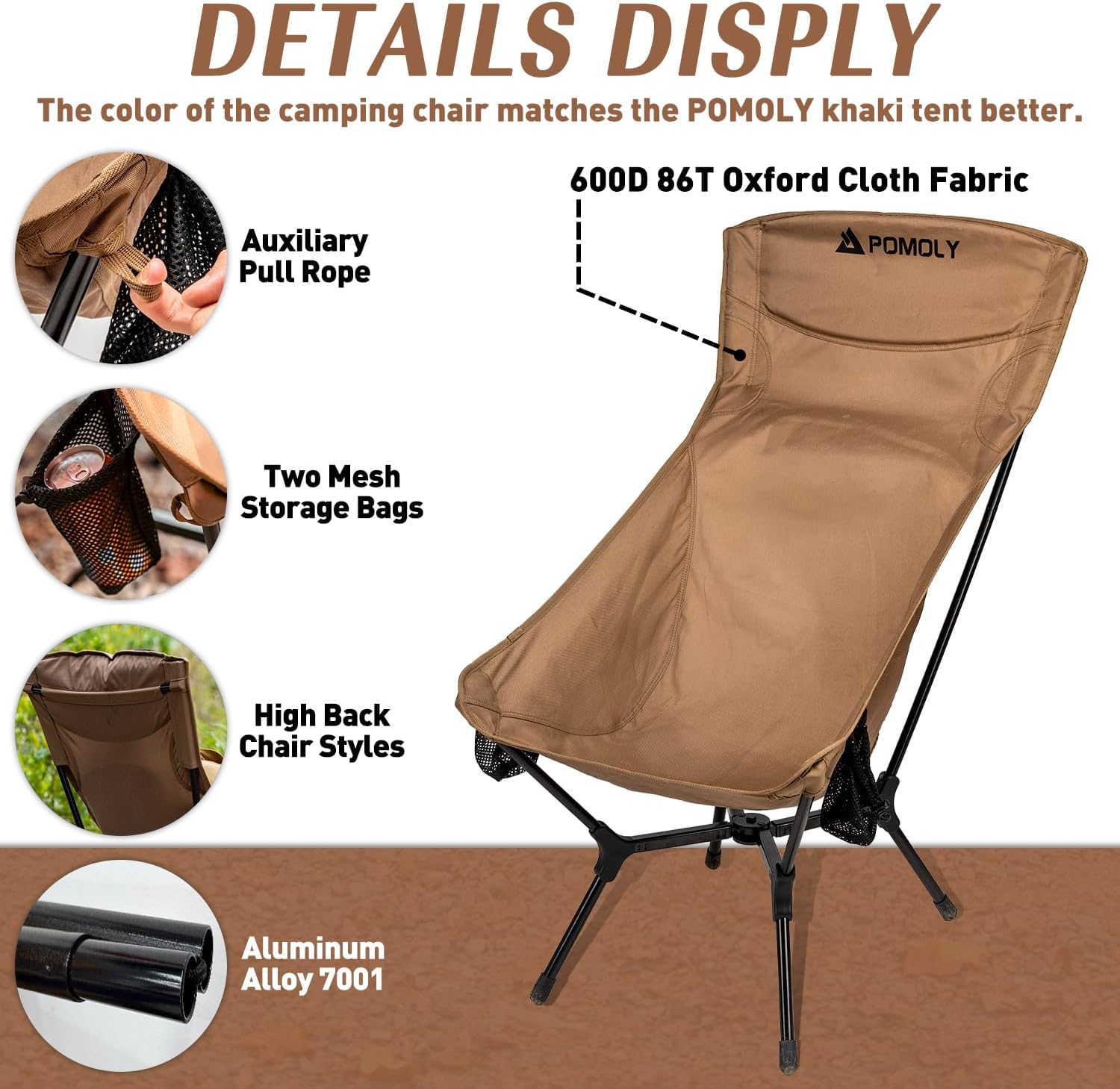 POMOLY Oversized Camping Chair Folding Chair High Back, MOKPro Portable Lightweight Folding Hiking Chair with Side Mesh Pockets for 441 lbs Capacity