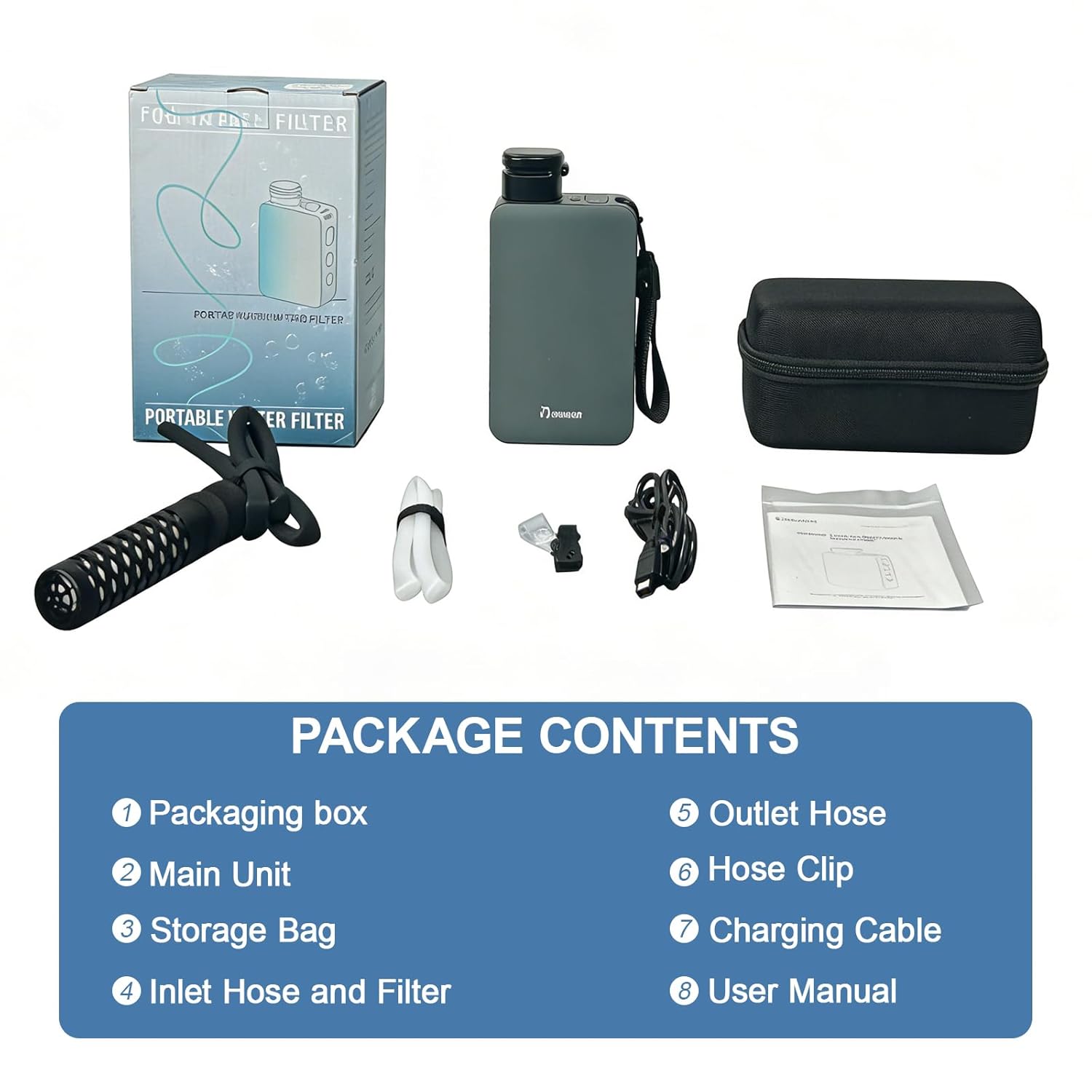 💧【Advanced Dual-Filtration Outdoor Survival Water Purifier】Equipped with an external 0.01-micron UF precision filter and an internal 3D pleated filter, it improves taste and enhances water quality, surpassing other materials in filtration performance. This product is SGS-certified and has passed stringent FCC, UL certifications. It’s ideal for outdoor adventures like hiking, camping, backpacking, fishing, hunting, and wilderness survival.