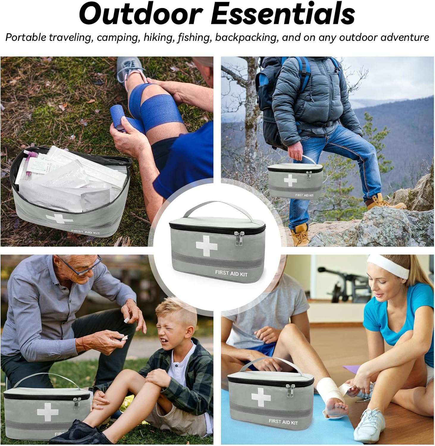 Camping First Aid Bag is Suitable for most daily use or adventures, including homes, offices, cars, sports, boats, road trip, etc. Reflective strip design, more noticeable at night.