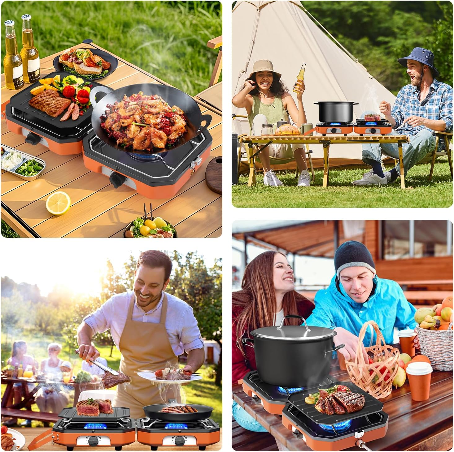 🍳DUAL-COOKING DOMINANCE – Boil or sear simultaneously with 2 independently adjustable burners (16,000 BTU total) and included griddle. Making coffee on the burner while preparing eggs/steaks on the non-stick frying pan—perfect for multi-dish meals.