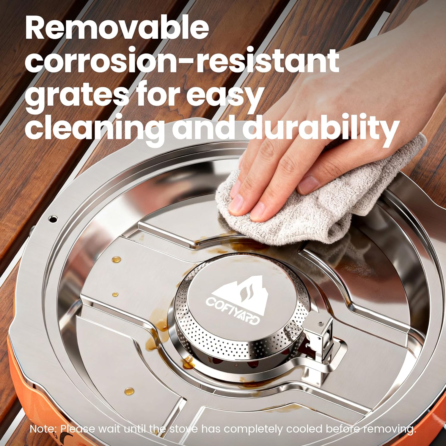 [ Built to Last]: The folding camp stove features a high-temperature-resistant steel body, ensuring it is robust and long-lasting. The stainless steel burners are corrosion resistant. Please note: It is normal for the burners to oxidize and turn black after high temperature cooking