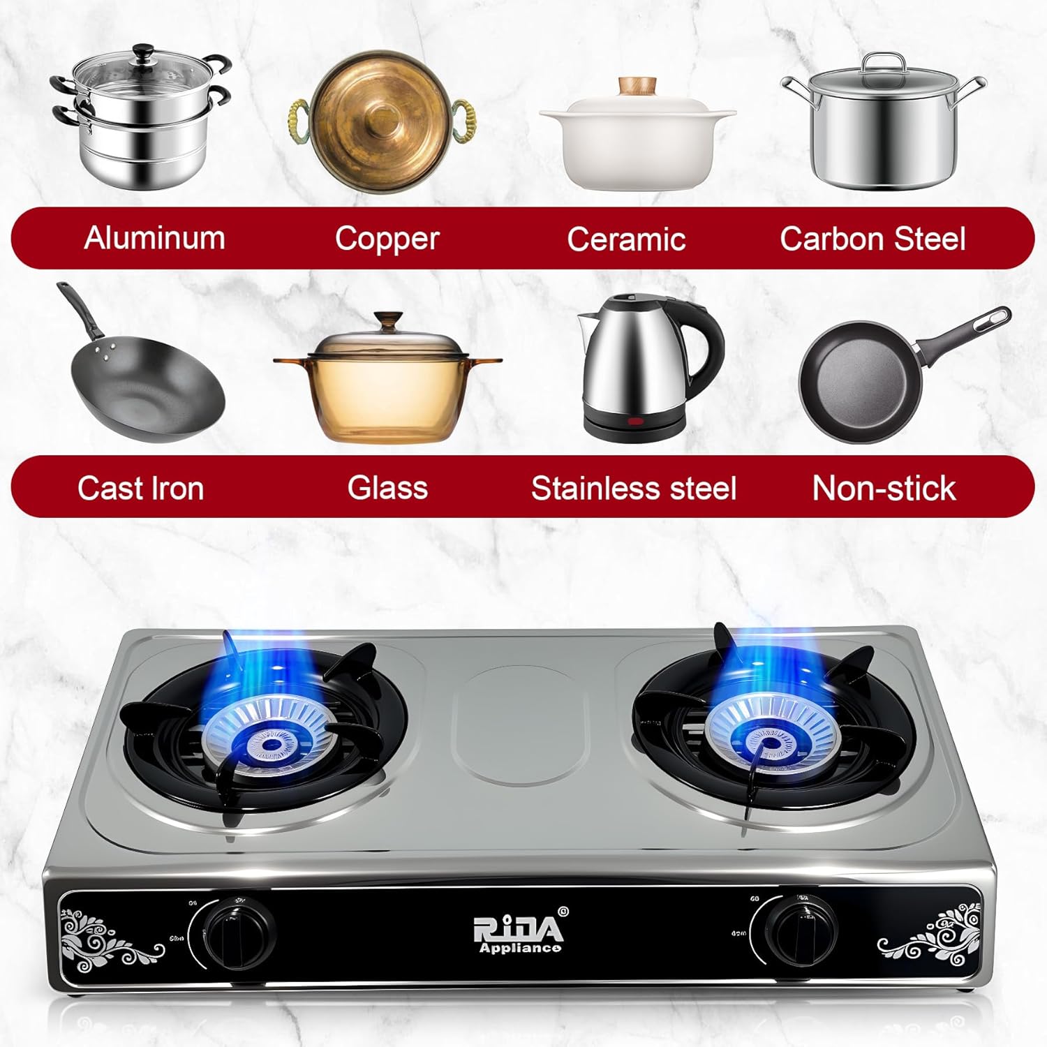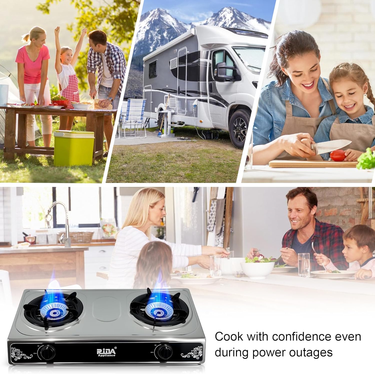 π₯ DUAL BURNER DESIGN β The RIDA 2-burner gas stove allows you to cook two dishes at once, making cooking more efficient and saving time. Ideal for boiling, frying, or simmering.