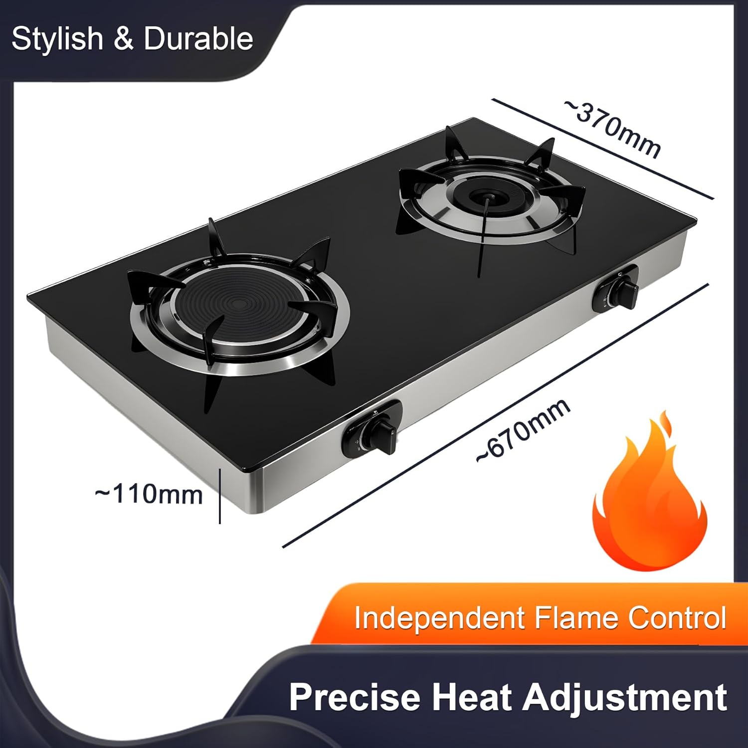 π§Ό EASY-TO-CLEAN GLASS COVER β The high-quality tempered glass cover protects the burners and is easy to wipe clean after use. Provides an elegant touch and helps keep your cooking area tidy.