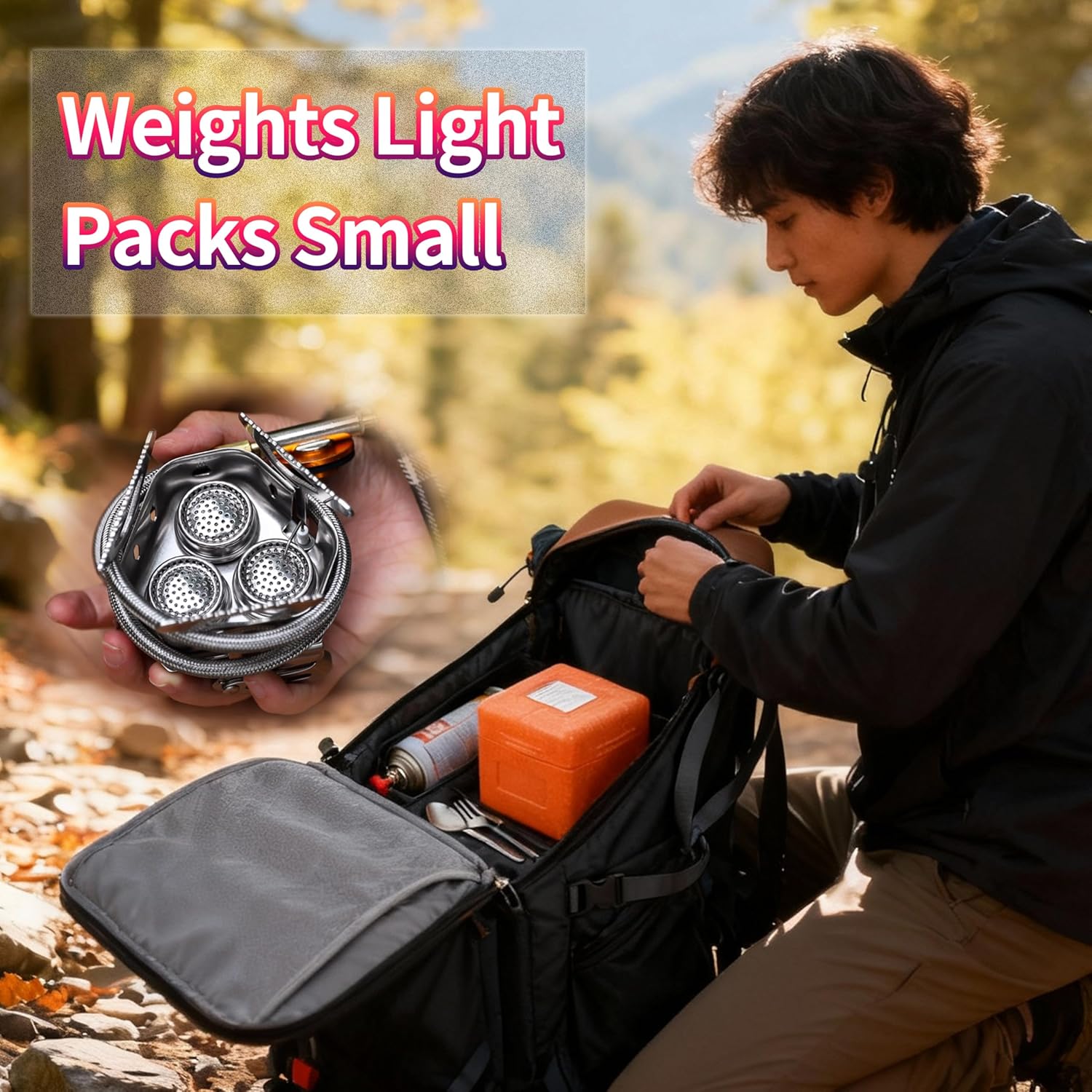 3-Minute Rapid Boil & Triple Burner Features an efficient triple burner design that concentrates high heat, boiling 1L of water in just about 3 minutes. Ideal for fast cooking during camping, hiking, and outdoor adventures.