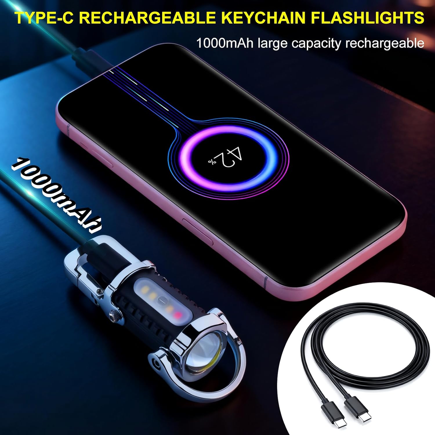 Rechargeable & Long-Lasting Power:Never run out of light with the built-in 1000mAh battery. This portable rechargeable bright keychain flashlight provides up to 10 hours of runtime from a single charge via the convenient TYPE-C port. A green indicator light shows the charging status. Please note: some heat during use is normal for a high-power mini light.