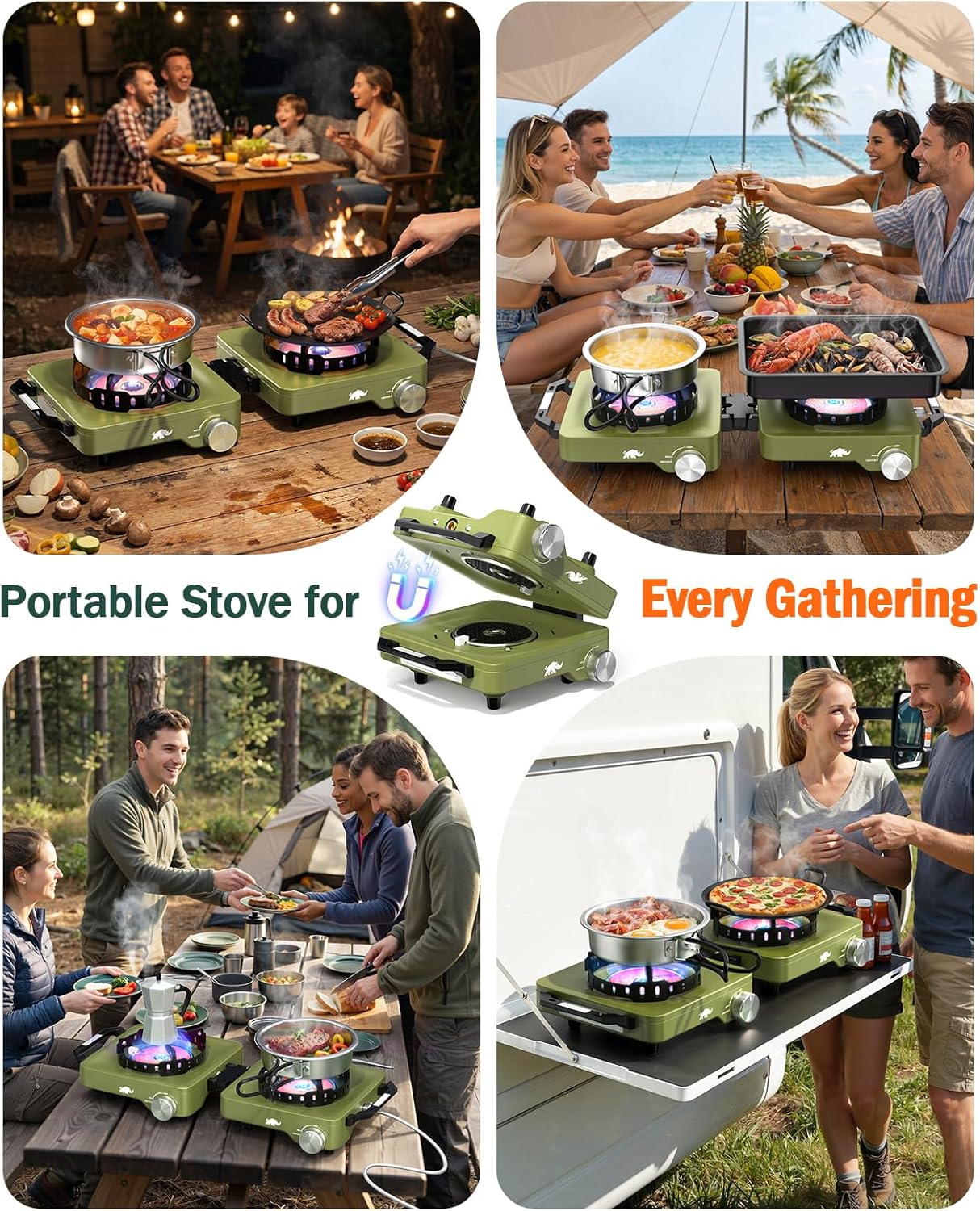 Upgraded Durability: This portable stove has undergone improvements such as the control knob has been upgraded from plastic to metal hardware, effectively preventing heat-induced melting. The gas hose with an integrated on/off valve is leak-proof. The reinforced construction provides excellent resistance to wear and tear, ensuring that the stove can withstand the long-term outdoor use.